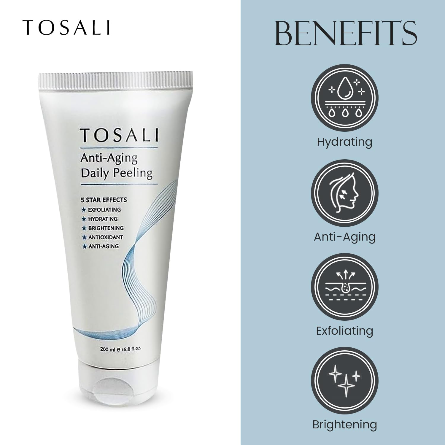 Anti Aging Daily Peeling Face Exfoliator – Peeling Gel with Hyaluronic Acid, Lactic Acid & Vitamin E, Gentle Exfoliating Gel for All Skin Types, Skin Care for Women, 6.8 Oz