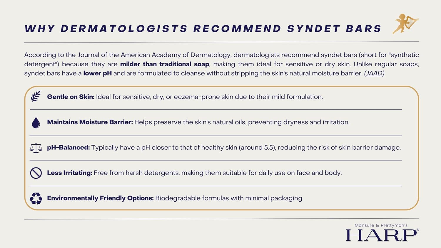 - ✅ pH-Balanced 5.0-6.0 to match and retain the skin's natural moisture barrier. Completely saponified vegetable oil free so it wont dry your skin. HARP products are not blends either, we do 100% syndet bars. Theres nothing better or more gentle on the market.