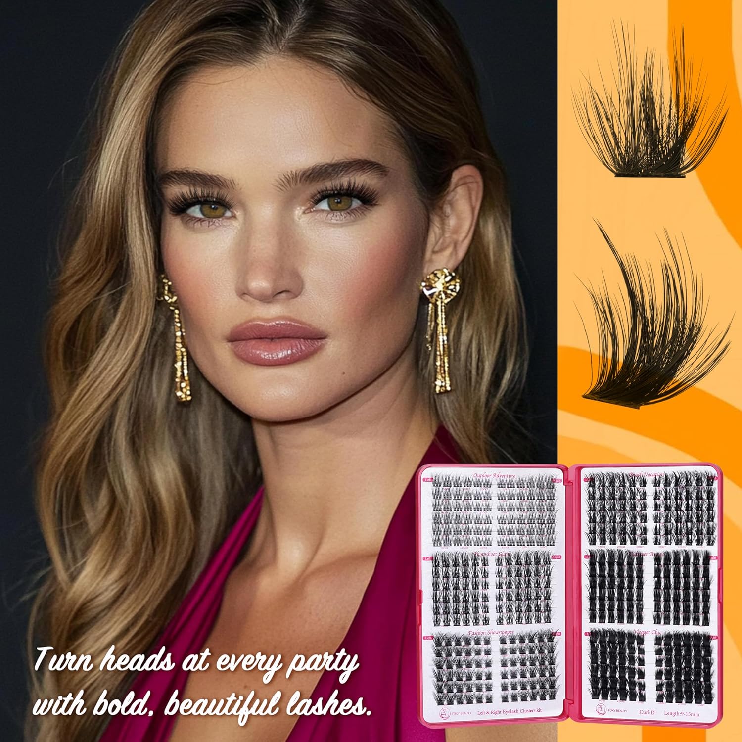 - Beginner Friendly:Pre-divided into LEFT & RIGHT eyelash clusters.Simplify the lash application process,eliminating the hassle of matching them yourself.Say goodbye to the hassle of numerous and disorganized DIY eyelashes.No Mapping Needed,perfect for newbie or women occupied with work.Separate left and right eye,no need to combine length by oneself,save your time