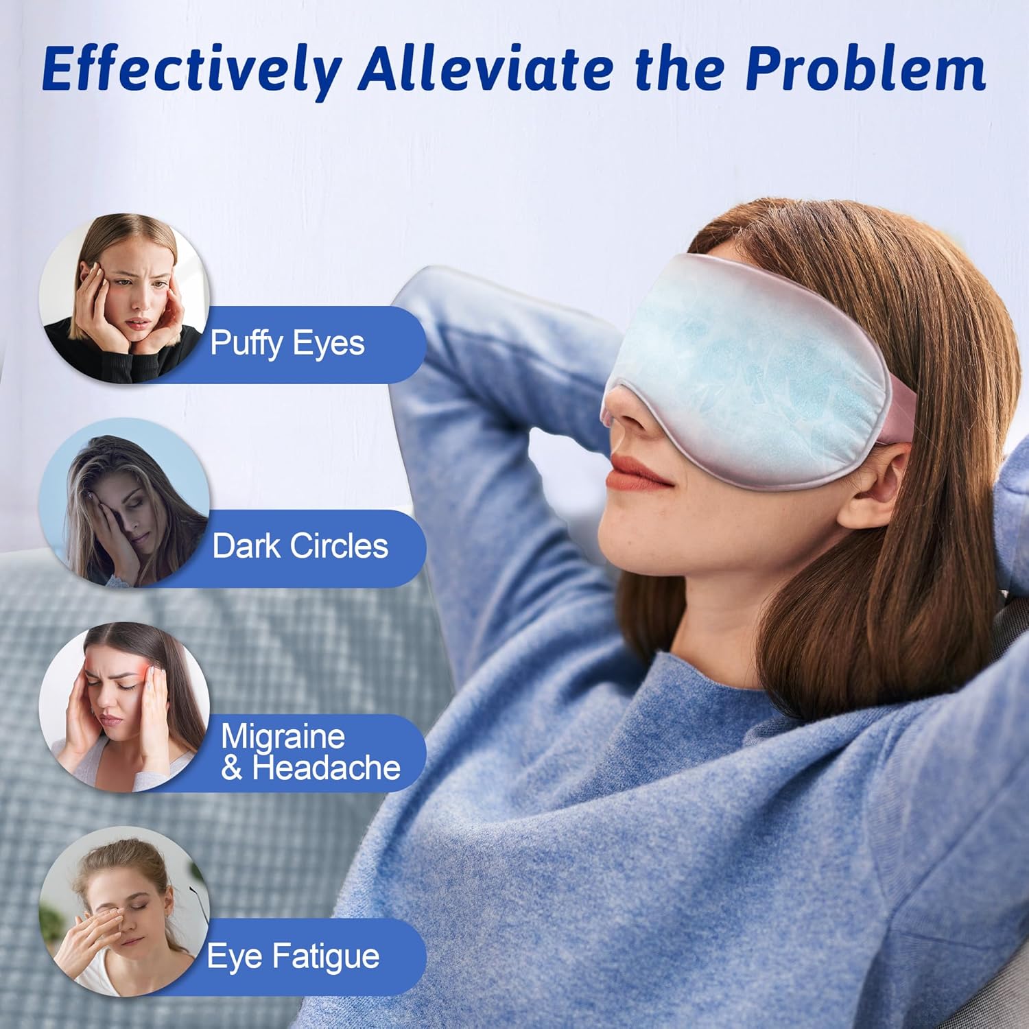 - 【Effective Relief of Eye Discomfort】This cold eye mask is specifically designed to cover key areas affected by migraines, including the eyes, forehead, and temples. It helps alleviate eye puffiness, eye fatigue, dark circles, headaches, migraines, and tension. By using this ice pack for eyes, you can enjoy comprehensive relief, improve various discomforts, and enhance overall comfort.