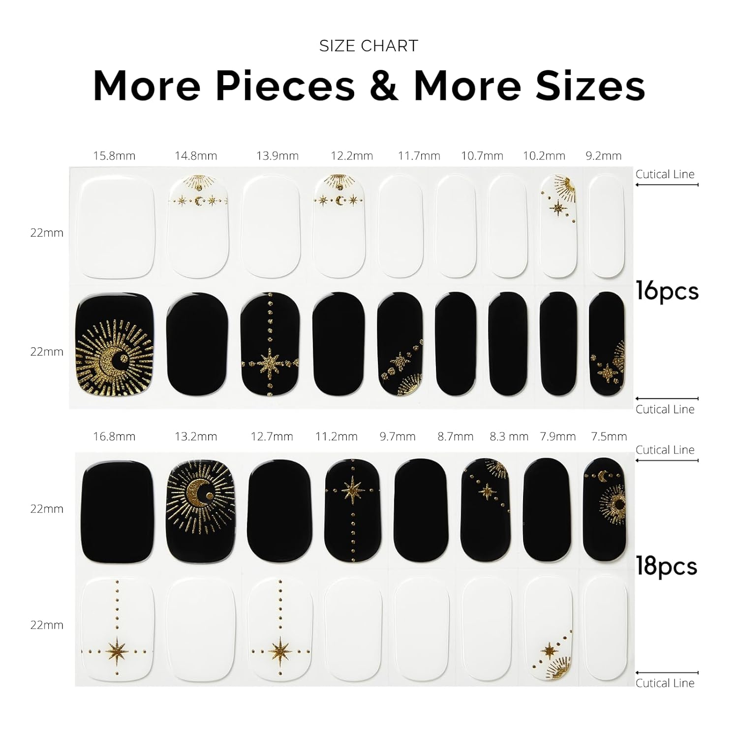 - 【34 PCS NAIL STRIPS】More Quantity & Sizes than Ever! - With 17 different sizes of our nail art stickers, you can easily find the right size to match your nails. - New curved side line fits even better with your nail shape for seamless adhesion.