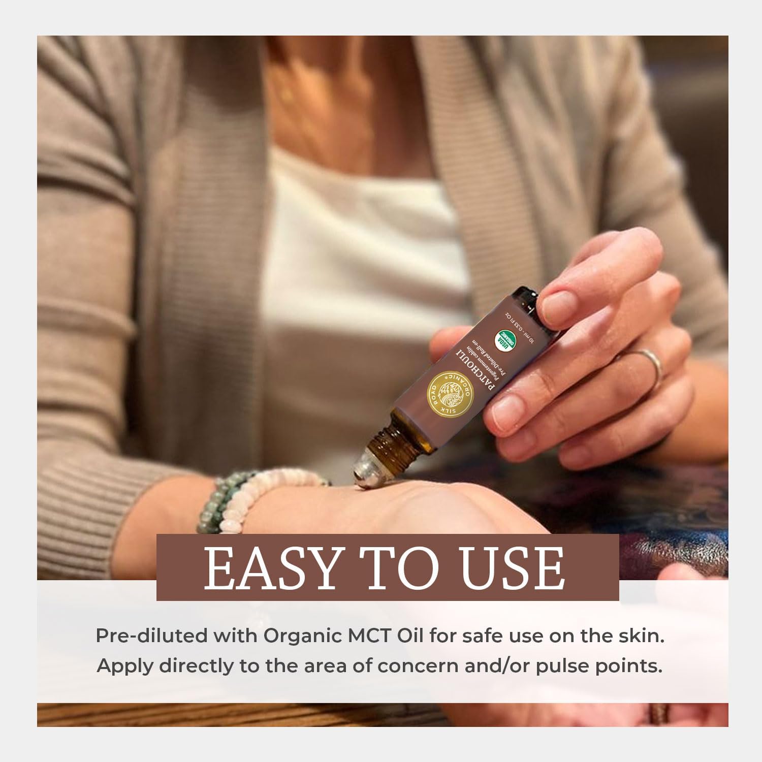 Silk Road Organic Patchouli Essential Oil Roll On, 100% Pure USDA Certified Aromatherapy - Uplift Mood, Enhance Attraction, Rejuvenate & Nourish Skin - 10 ml Roller