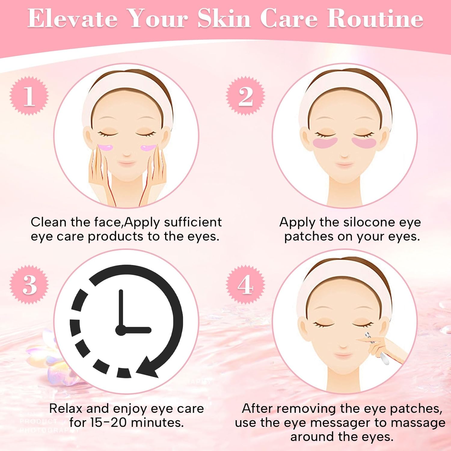 Under Eye Patches Silicone - 2 Pcs Reusable Eye Patches, Eye Patches Plump Fine Lines & Wrinkles with Metal Eye Cream Applicator, Tin Case