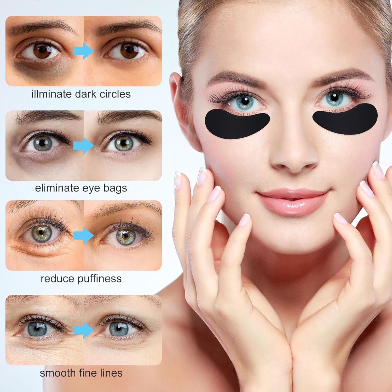Under Eye Patches 2 Pairs, Silicone Reusable Eye Patches, Under Eye Mask for Skin Care Effect to Reduce Wrinkles and Fine Lines (Black)