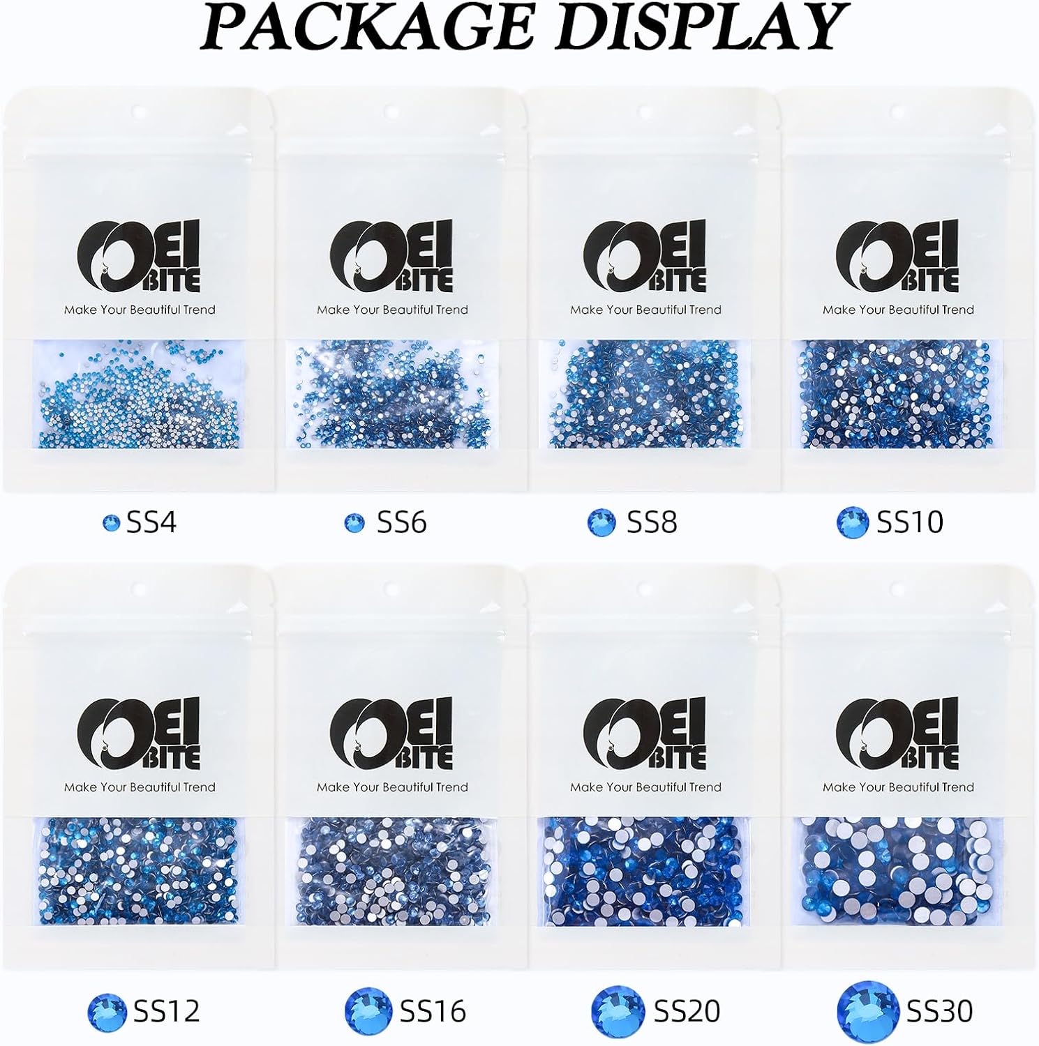 - Product Packaging: Bags packaging SS12 2.9~3.0 MM - 1440 Pcs Capri blue flatback rhinestones