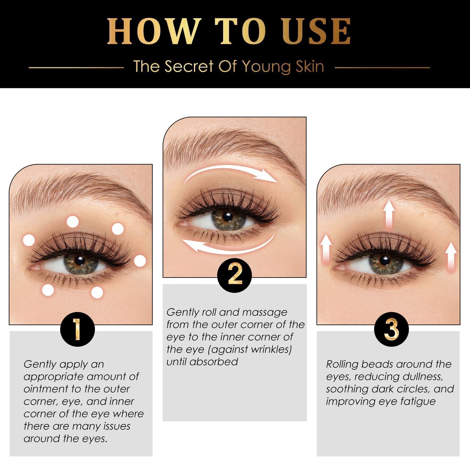 - 【Easy To Use】The Eye Roller Applicator Can Evenly Distributes The Eye Serum Around The Eye Area And Provides A Comprehensive Massage Of The Eye Contour.