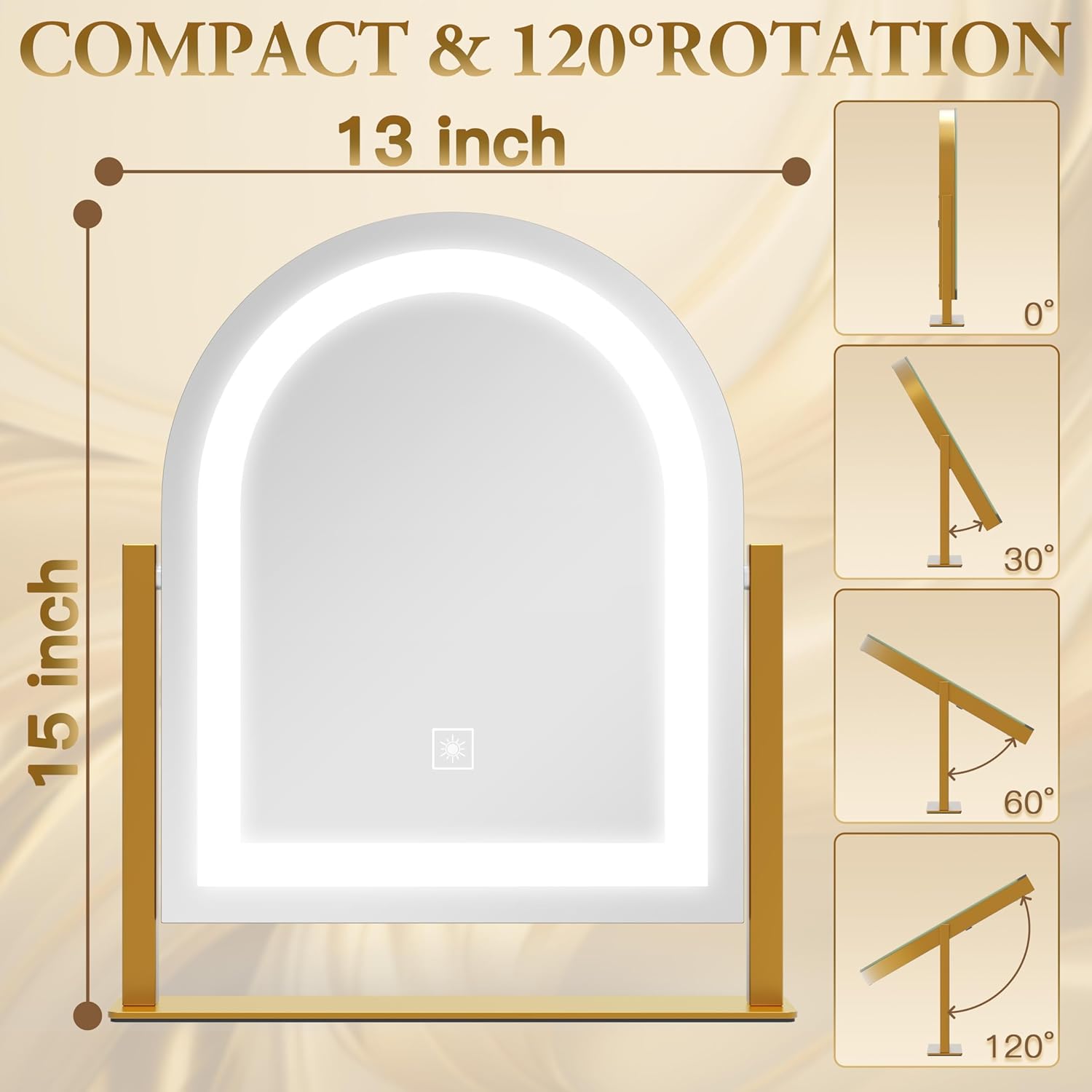 - 【Minimalistic Rounded Design】Get ready to elevate your makeup game with our 15" x 13" LED vanity mirror. This size ensures that you can see every angle with ease. Say goodbye to cramped, uncomfortable spaces and hello to the luxury of having plenty of room to create the perfect look.