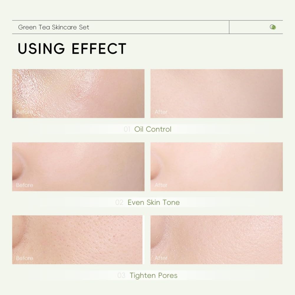 - 【Natural Moisturizing Ingredients】Our skin care sets & kits are extract natural Green Tea extract and a variety of mild skin care ingredients, which can penetrate deep into the bottom layer of the skin, continuously replenish moisture to the skin, to achieve long-lasting moisturizing skin care.