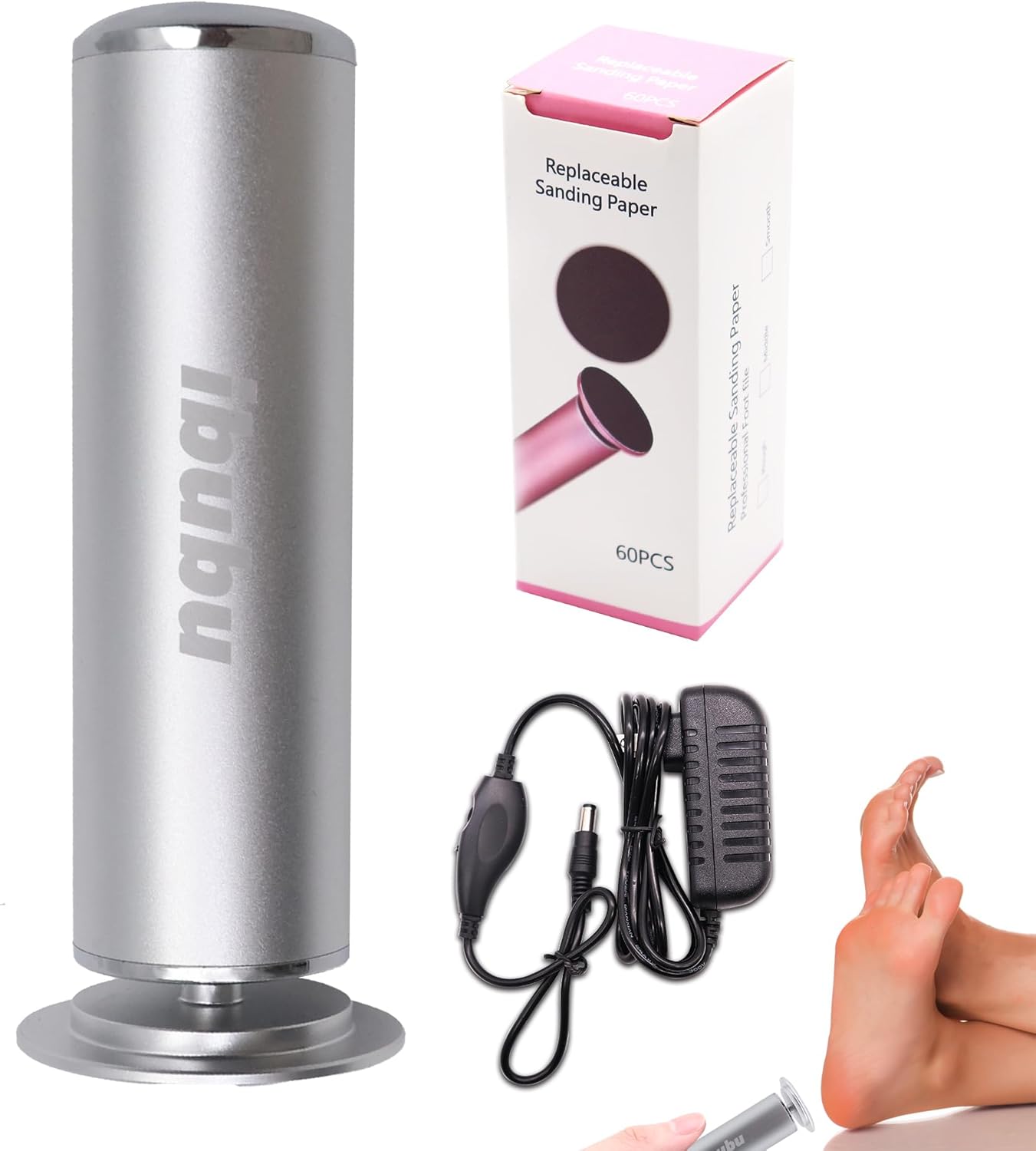 - 【ibubu Packaging Details】1 x elelctric foot file, 1 x box repacement sandpaper disk(60pcs), 1 x US plug, 1 x user manual. Please note that our Electric Feet Callus Remover products and packaging both feature our brand logo 'ibubu'. Products without the 'ibubu' logo are not produced by our manufacturer