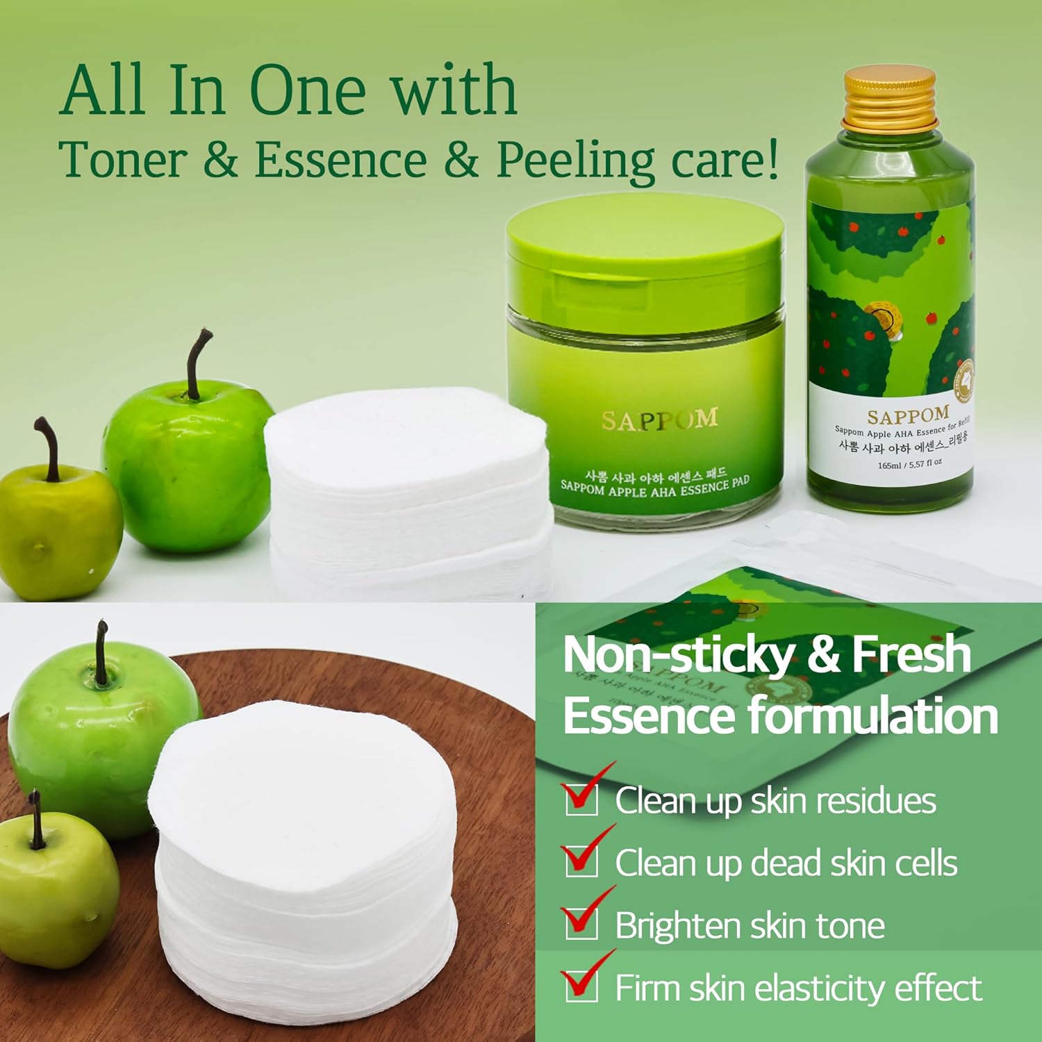 Apple AHA Essence Pad, Green Apple, with AHA, Toner pad, Soothing and Peeling, 60 vegan sheets-for sensitive skin, Hydrating care