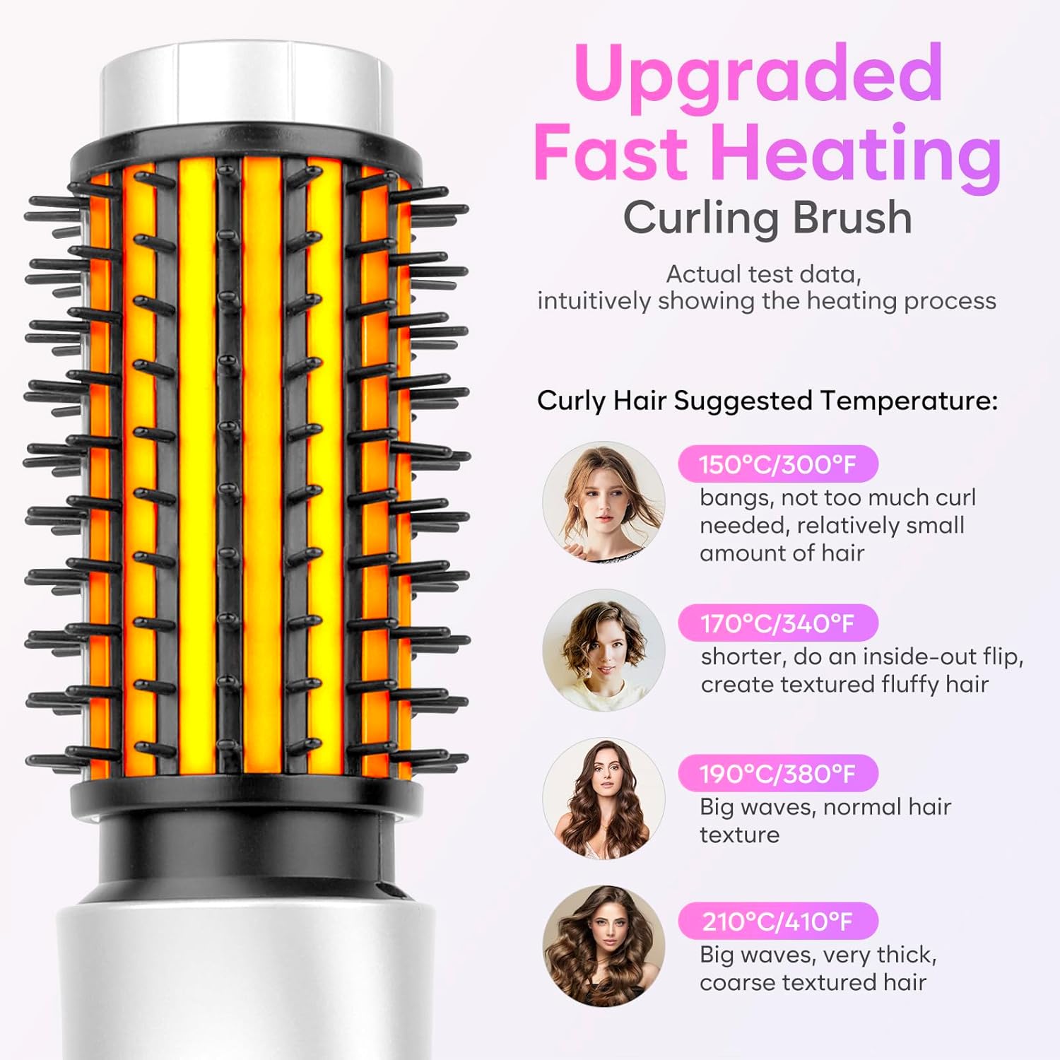 - 【30s Quick Heating】: The advanced heating technology allows the curling wand brush to heat up quickly, It can quickly reach a relatively hot temperature in 30 seconds. Try to avoid touching it with your hands to avoid burns.However, in order to achieve better shaping effect, it is best to wait patiently for the temperature to reach the set temperature before use.