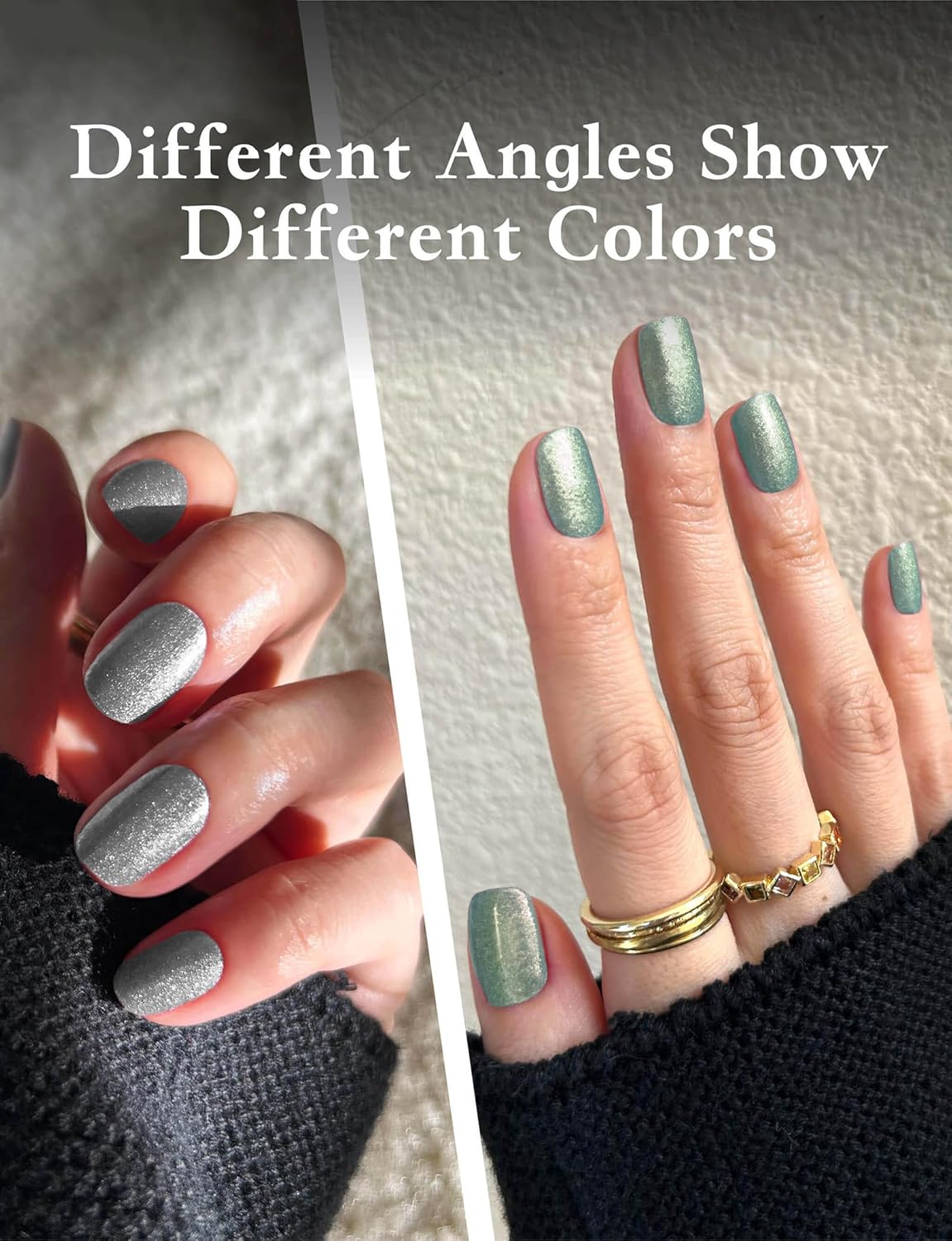 - [DESIGN]: Experience the magic of gradient glitter with our nail stickers, which shift colors from different angles. The dynamic gradient effect creates a mesmerizing sparkle that transforms with every movement, providing a unique and captivating look that stands out from every perspective