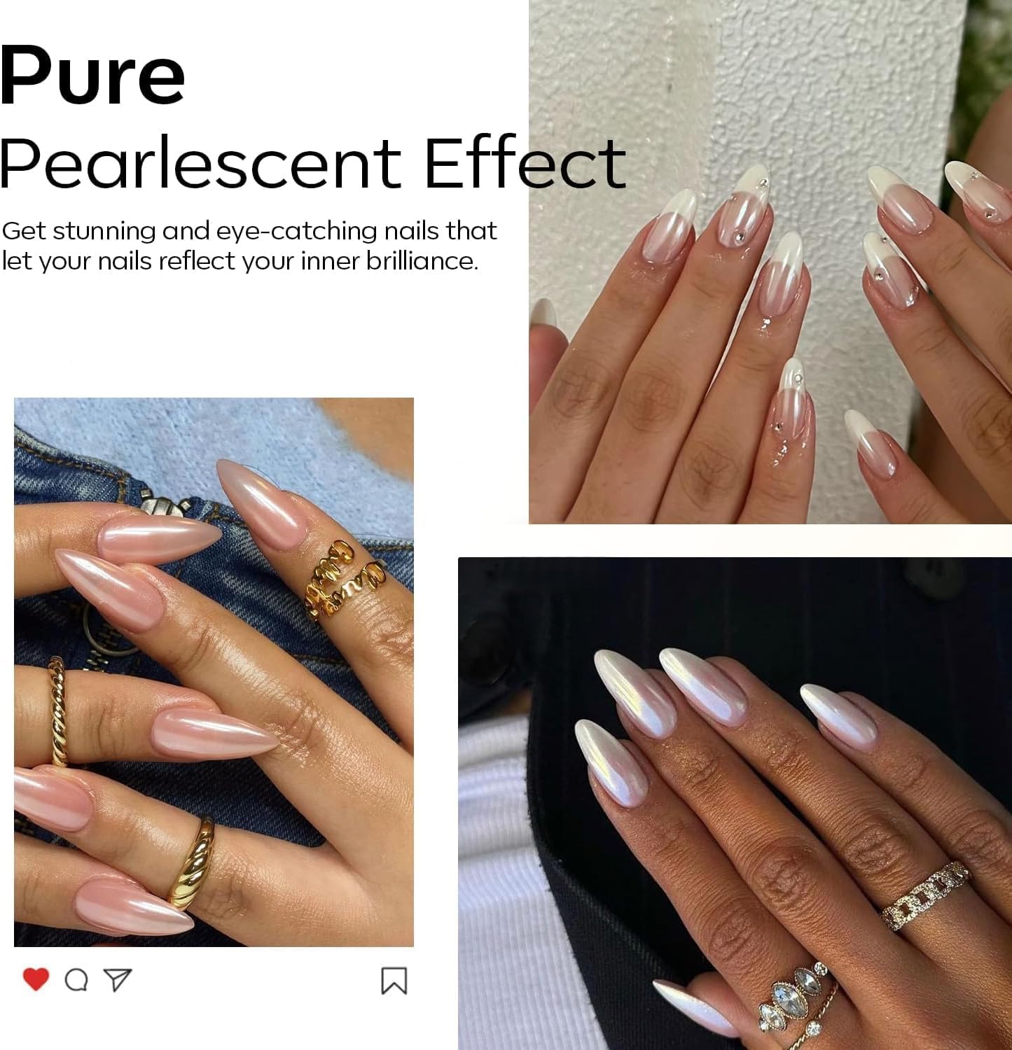 - Different Base Different Effects:Chrome powder for nails set can be used with a variety of gel polishes to produce a variety of unicorn chrome nail powder.tips: unique mirror effects can be achieved by adjusting the angle,using different lighting techniques or using different gel base colours.Magic nail shimmer powder versatile kit offers six unique shades to create a variety of effects such as water ripples,french nails,two-colour designs,shells,mirrors and more.