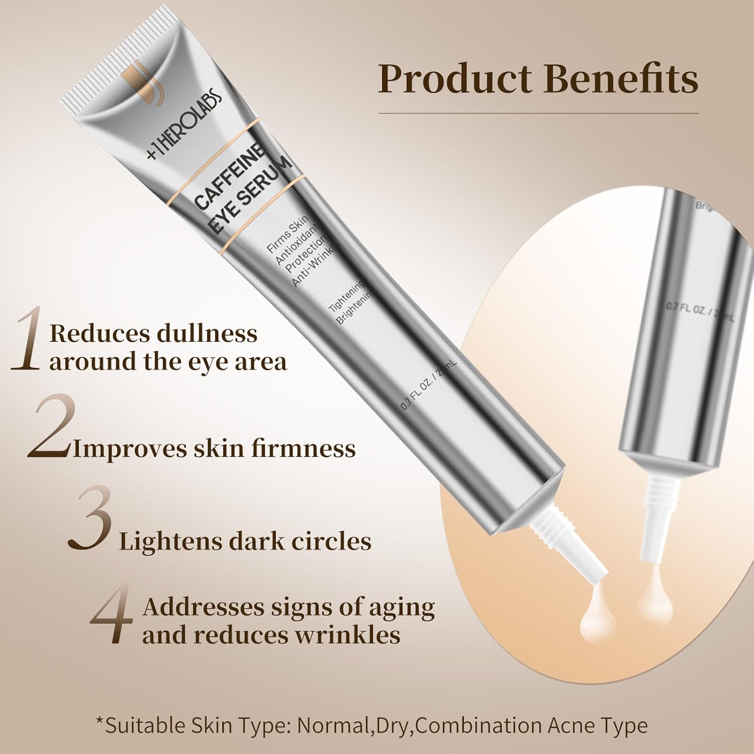 - Gentle Care for All - This caffeine under eye cream is suitable for all skin types, including sensitive skin. Free from fragrances and harsh additives, it’s safe for daily use around the delicate eye area.