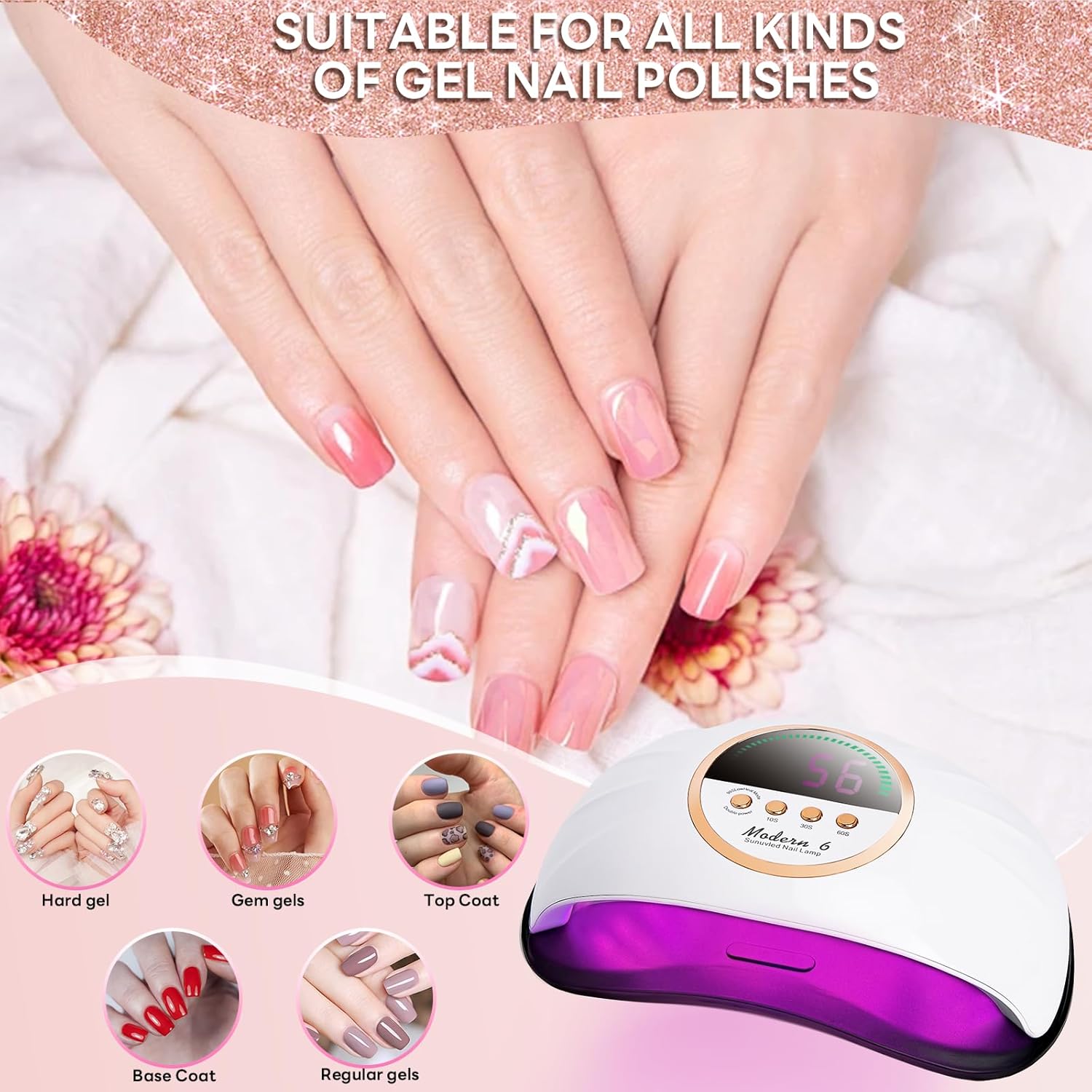 - 【4 Timer Setting & Smart Sensor】 This gel nail light has a large LCD display with 4 timer settings (10', 30', 60', 99' low heat mode). Automatic sensor - 1 Finger control with ease. Hands in, lights on. Perfect for DIY nail enthusiasts and salon quality nail art without any extra manual control.