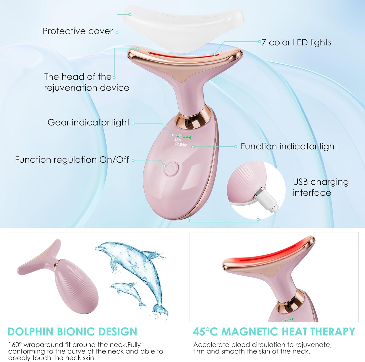 Facial Massager Red-Light-Therapy-for-Face and Neck, Face 𝖲 culpting Wand with 7 Color - Birthday, Christmas, Mothers Day, Valentines Day Gifts for Her Women Mom Best Friend Wife Teacher (Rose Gold)