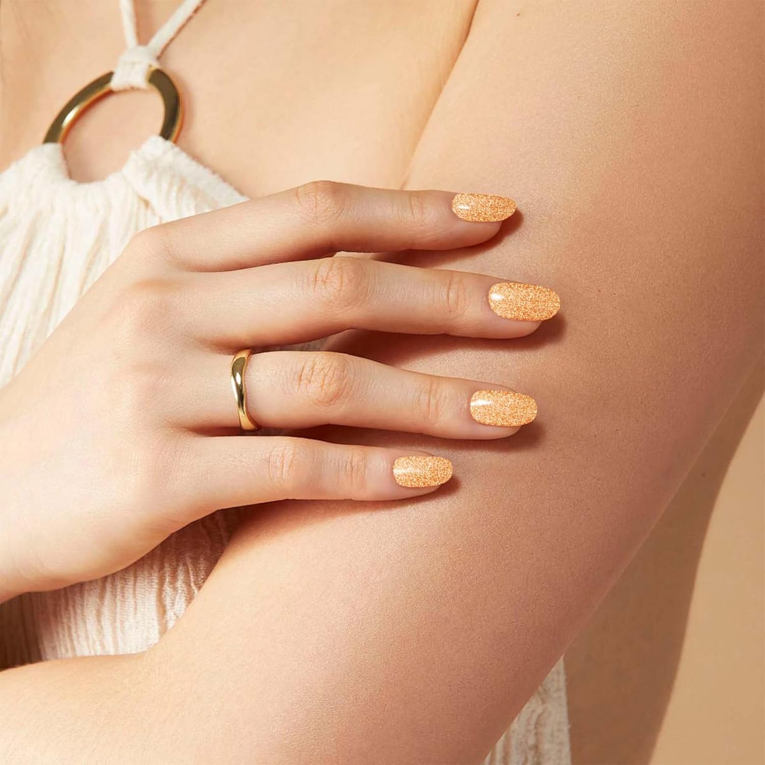 Gloss Nail Strips|Uv Free|22 Pcs,Gel Nail Stickers|Long Lasting Two Weeks and Easy to Apply&Remove|Golden Spot 1