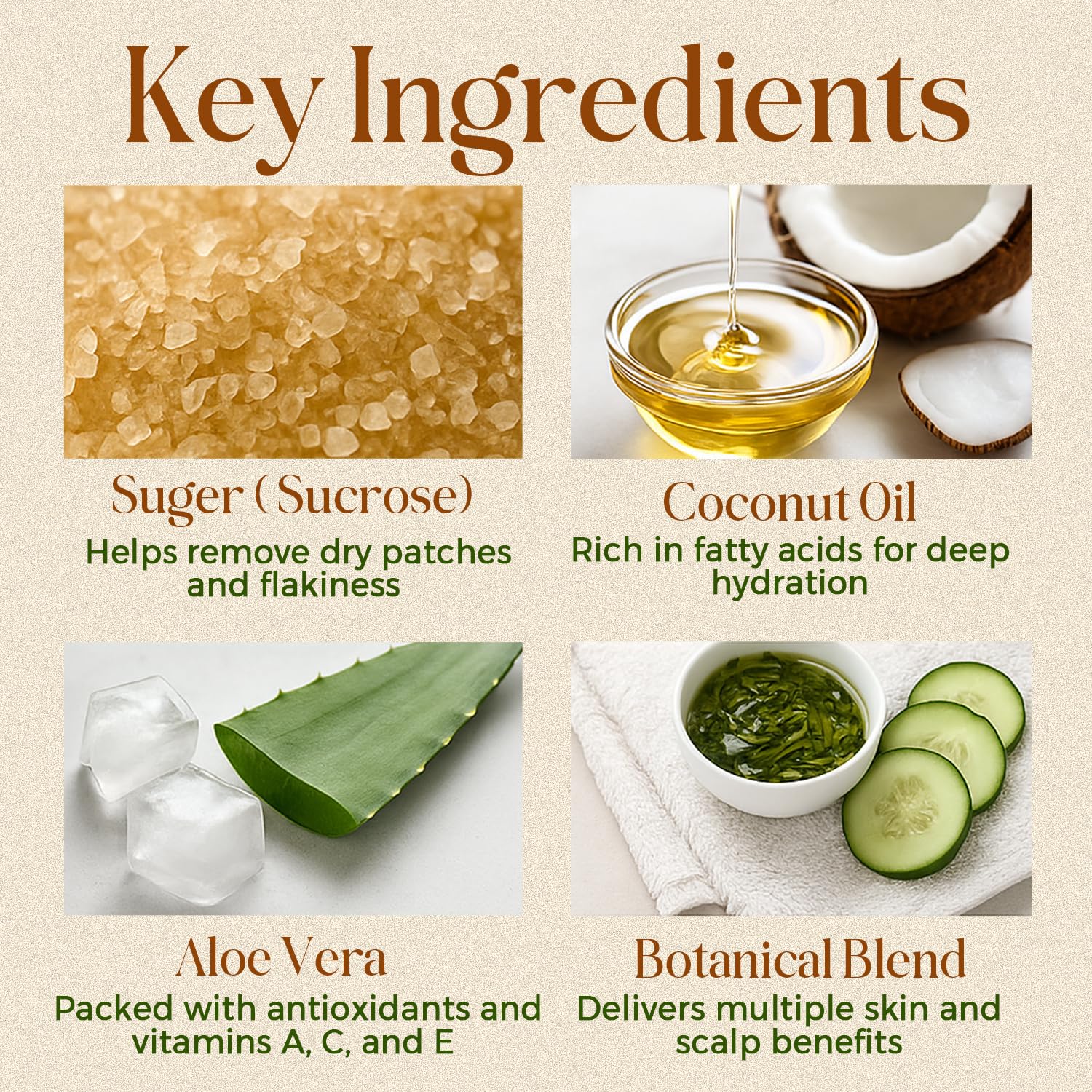 - ✅ 2-in-1 Scalp & Body Treatment: Gently exfoliates dead skin, product buildup, and impurities with natural sugar crystals—perfect for both scalp and body care routines.
