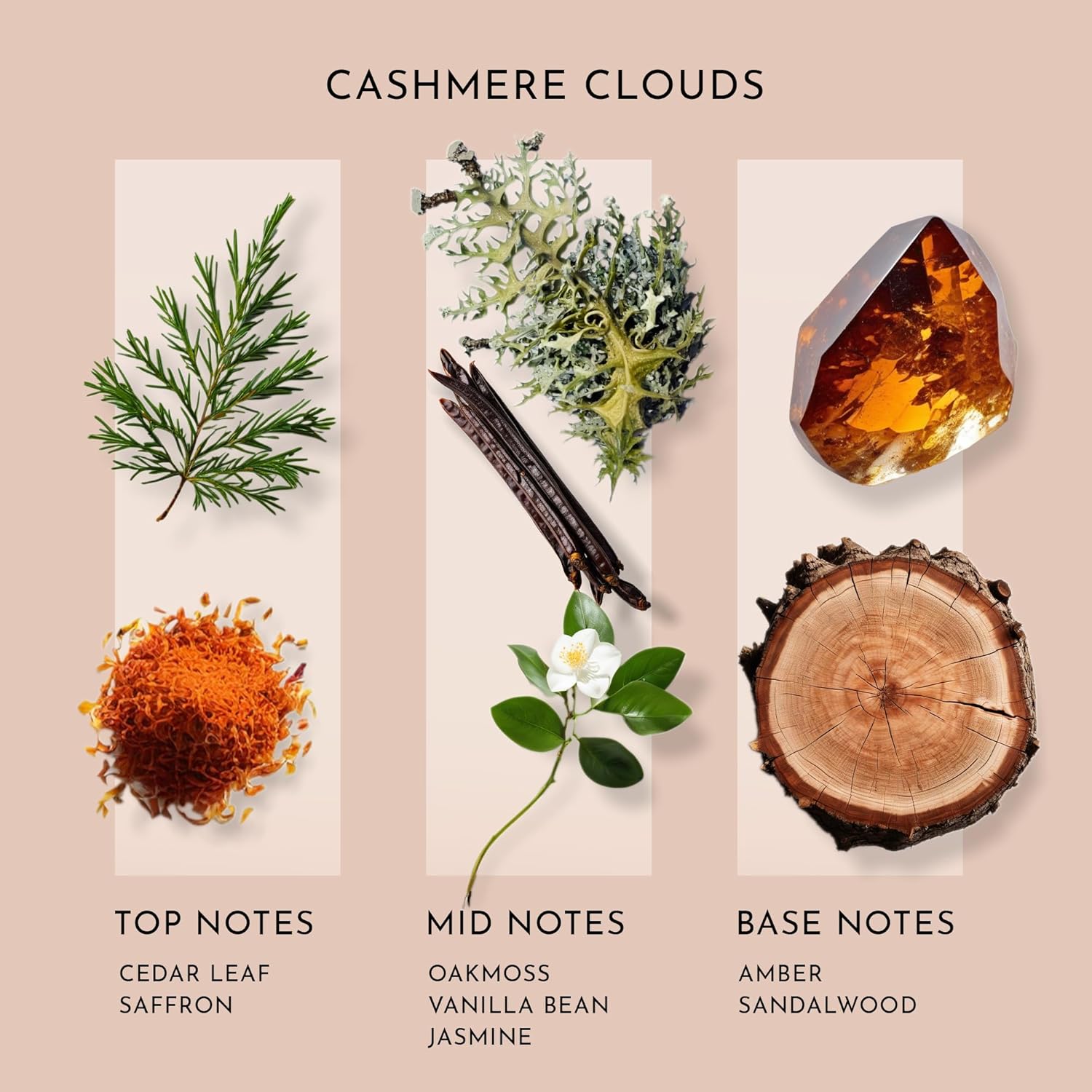 - PERFECT MATCH: Evening Relaxation: Create a peaceful atmosphere for winding down. Self-Care: Indulge in a moment of self-care with Cashmere Clouds. Gift-giving: Make a thoughtful and luxurious gift for a loved one.