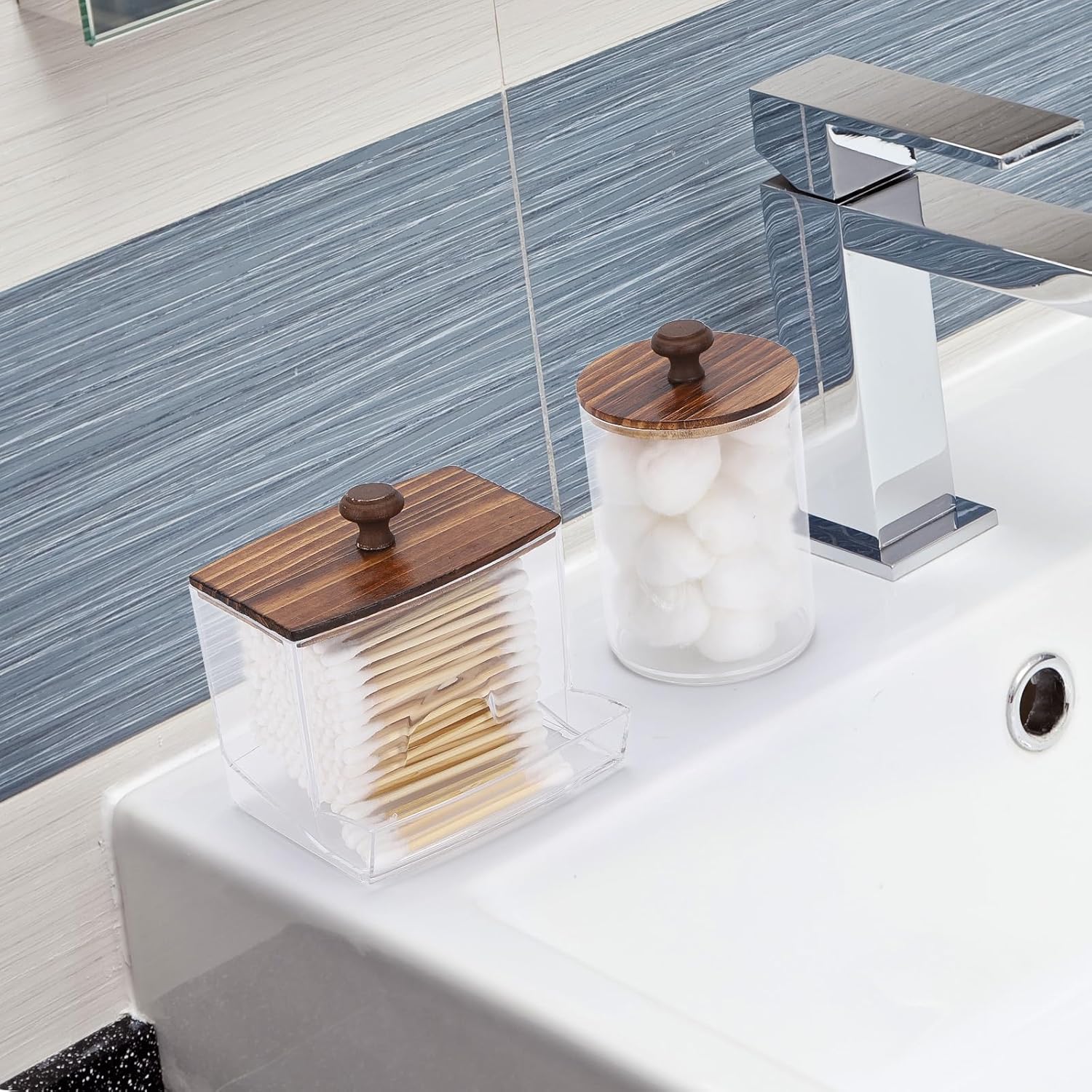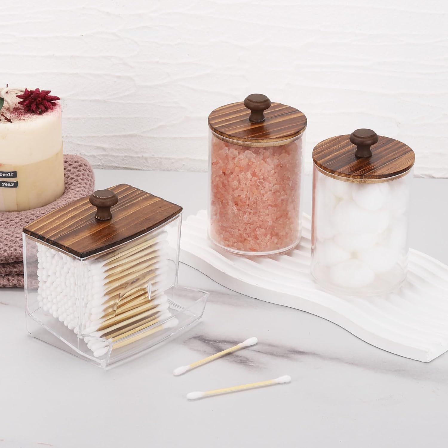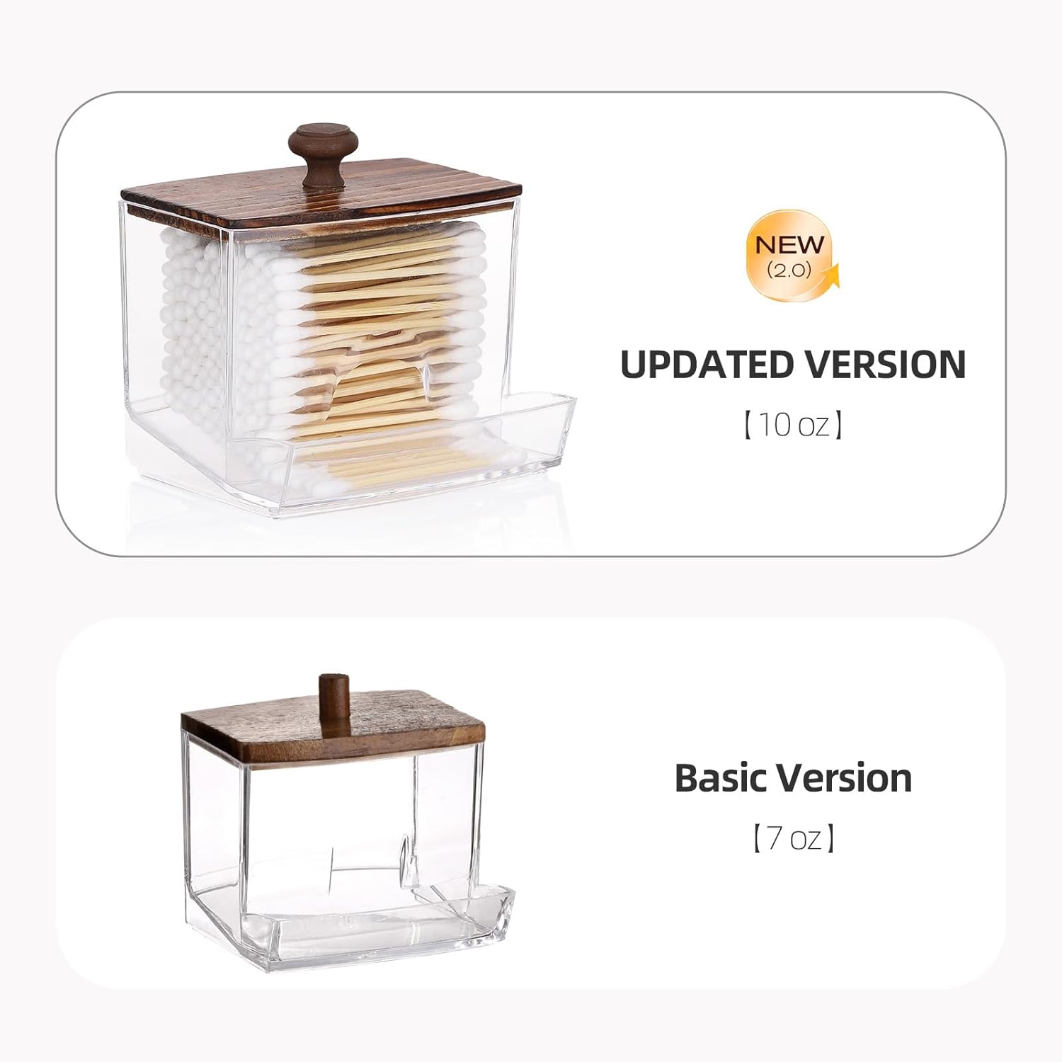 - Bigger than Before - Compared to the previous one, this one is bigger, 1pcs Qtip Dispenser - 10oz , 2pcs Cotton Ball Holder - 10oz. Putting&Picking cotton swabs more easier