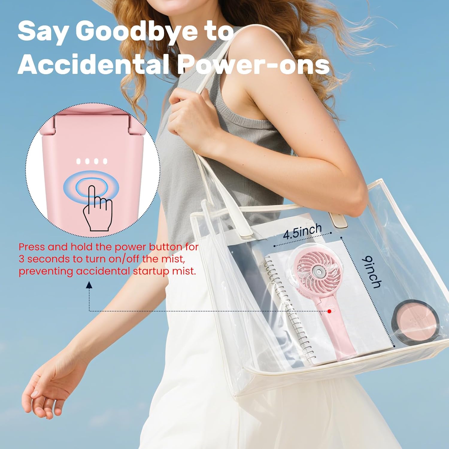 HandFan 4000mAh Handheld Misting Fan, 50ml Water Tank, Rechargeable Personal Mister Fan Portable AC, Spray Water Mist Fans, Foldable Cooling Ice Fans for Beach Travel Outdoors(Pink)