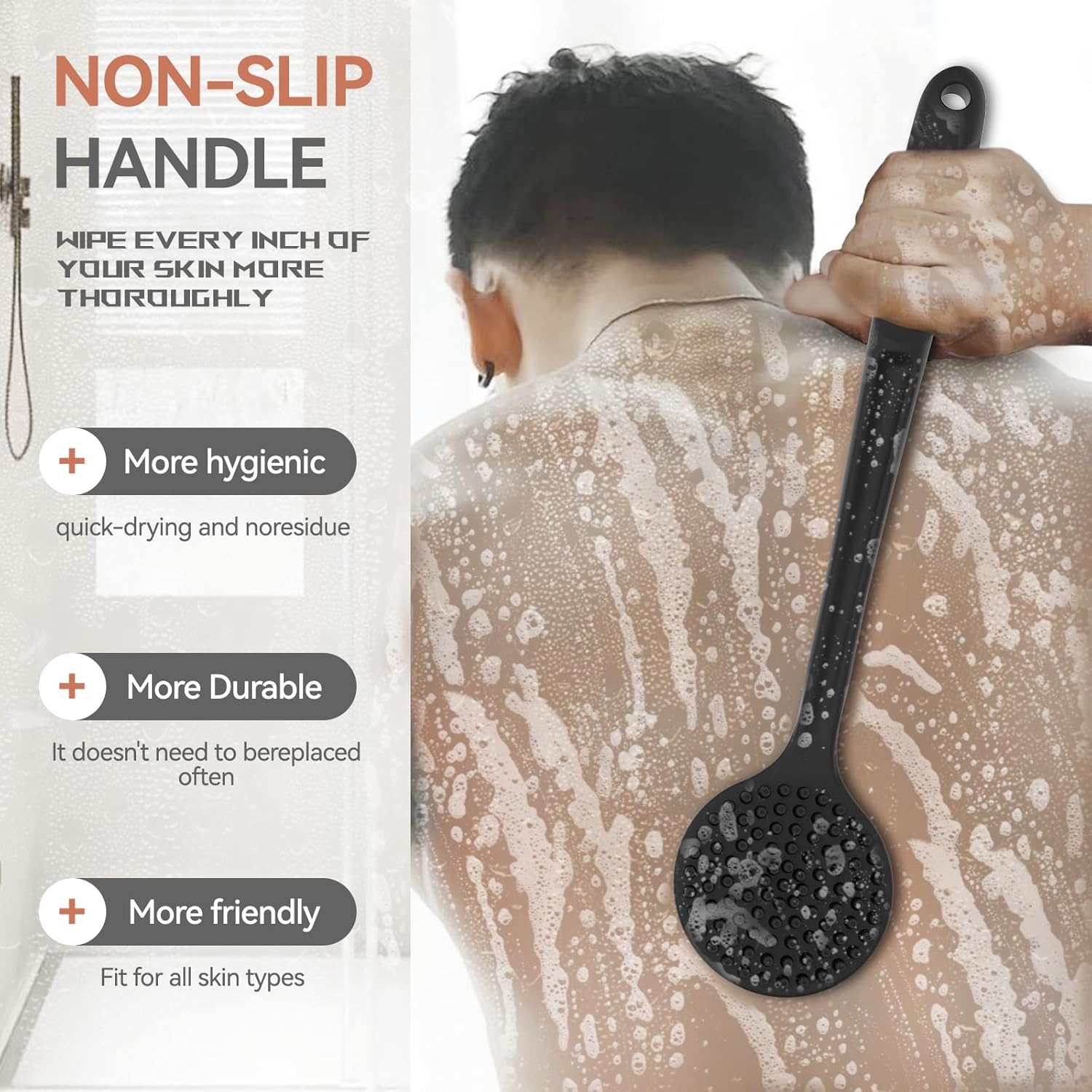 3 PCS Silicone Bath Brush Set,Back Scrubber & Body Brush & Face Brush Set, Super-Exfoliating & Lathering Body Scrubber, Shower Brush, Face Scrubber Combination for HomeBathroom Hotel Travel.(Black)