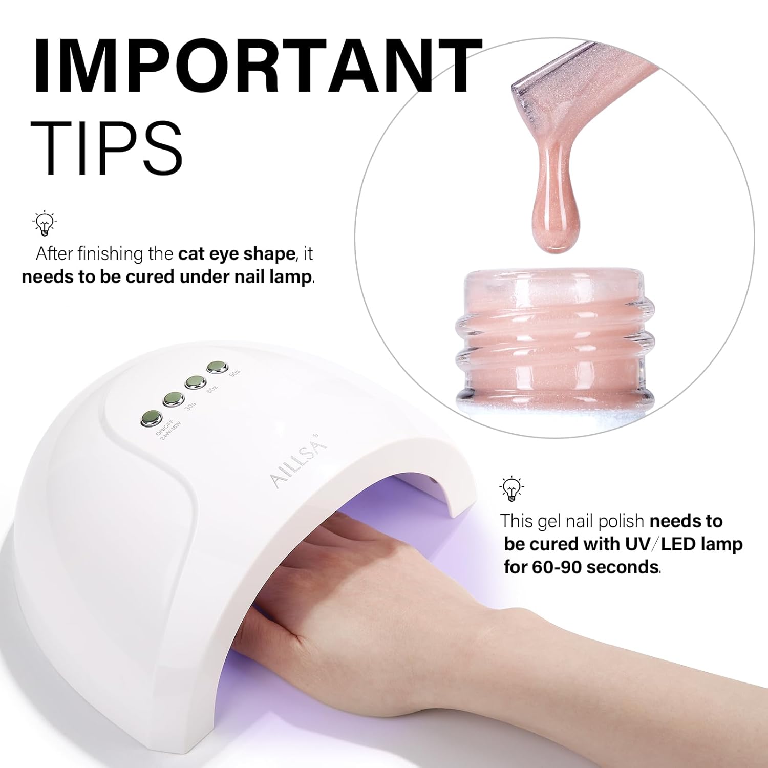 - Crystal Sparkle Effect: AILLSA cat eye gel polish creates mirror-like sparkle, crystal-clear nails, or vibrant cat-eye effects. Use it alone or pair it with any base color for stunning crystal glass nail designs featuring translucent tones and a dazzling finish.