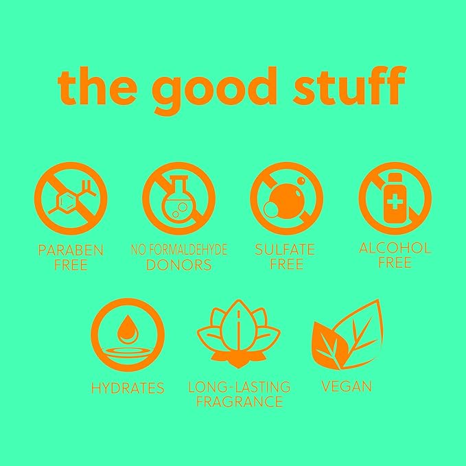 - Paraben-free, vegan, sulfate-free, contains no formaldehyde donors and has a long-lasting fragrance in a medium-weight formula.