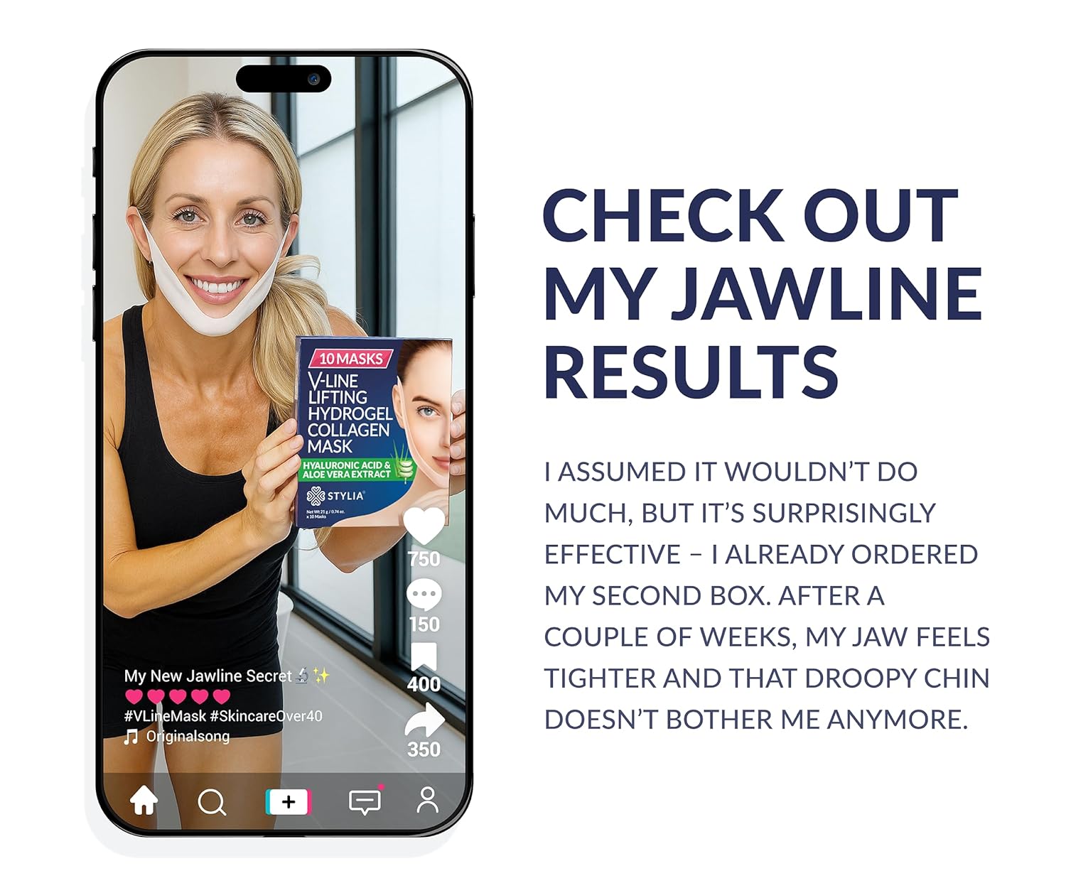 Stylia V Line Lifting Collagen Face Mask - Double Chin Strap for Women - Jawline Shaper Face Lift Tape - Neck Lift Collagen Mask - Chin Strap for Sleeping - Hyaluronic Acid, Aloe Vera, Cica 2PC