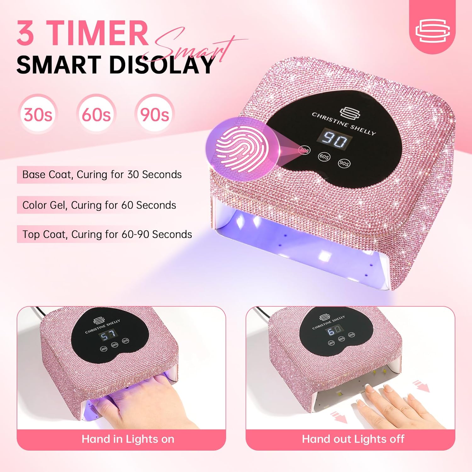 - 3 Timing Modes: Our nail lamps for gel polish features a heart-shaped full-touch LCD display with 3 timer settings: 30s, 60s, 90s. On top of that, the infrared sensor lights automatically activate when you place your hand under the light, and they turn off when you remove it