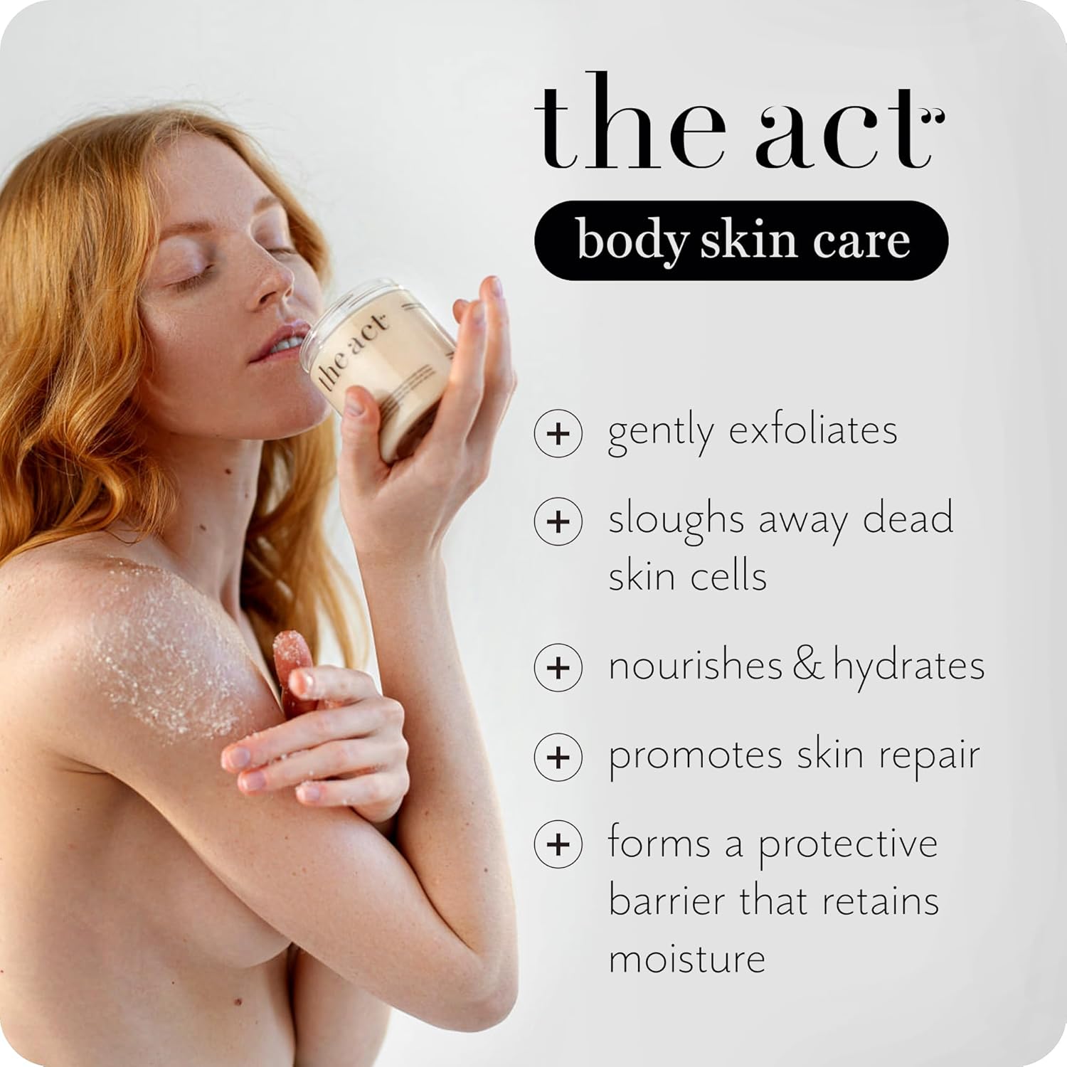 - 🥥 Natural Coconut Body Scrub: The act exfoliating scrub features only natural ingredients, including coconut shavings and fine sea salt, which effectively remove dead skin cells, unclog pores, and facilitate the deep penetration of nourishing components.