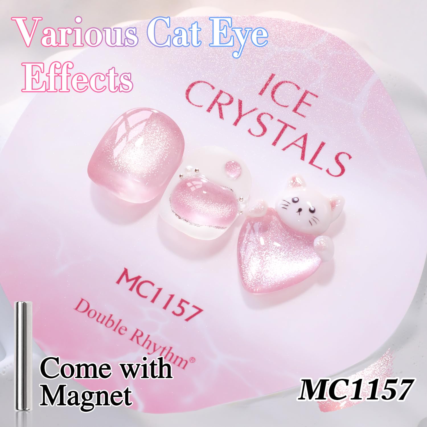 - Same Color Same Bollte Cat Eye Gel Nail Polish : Double Rhythm cat eye gel nail polish kit includes 1 color 15ml / 0.5 fl.oz gel nail polish. The cat eye gel can be combined with different bacse colors arbitrarily, you can get different colors nail art.You can use different base coat to creat different sytles.
