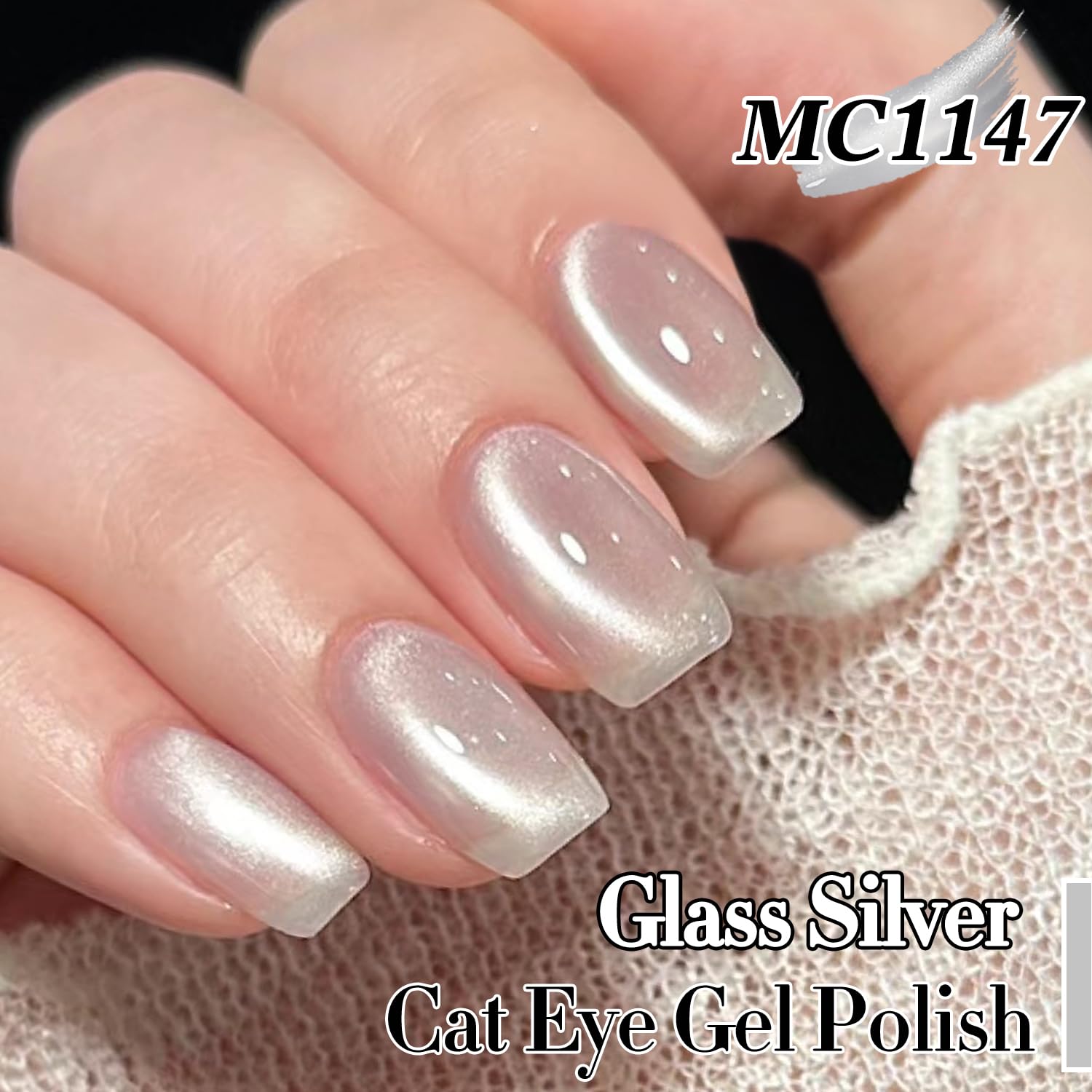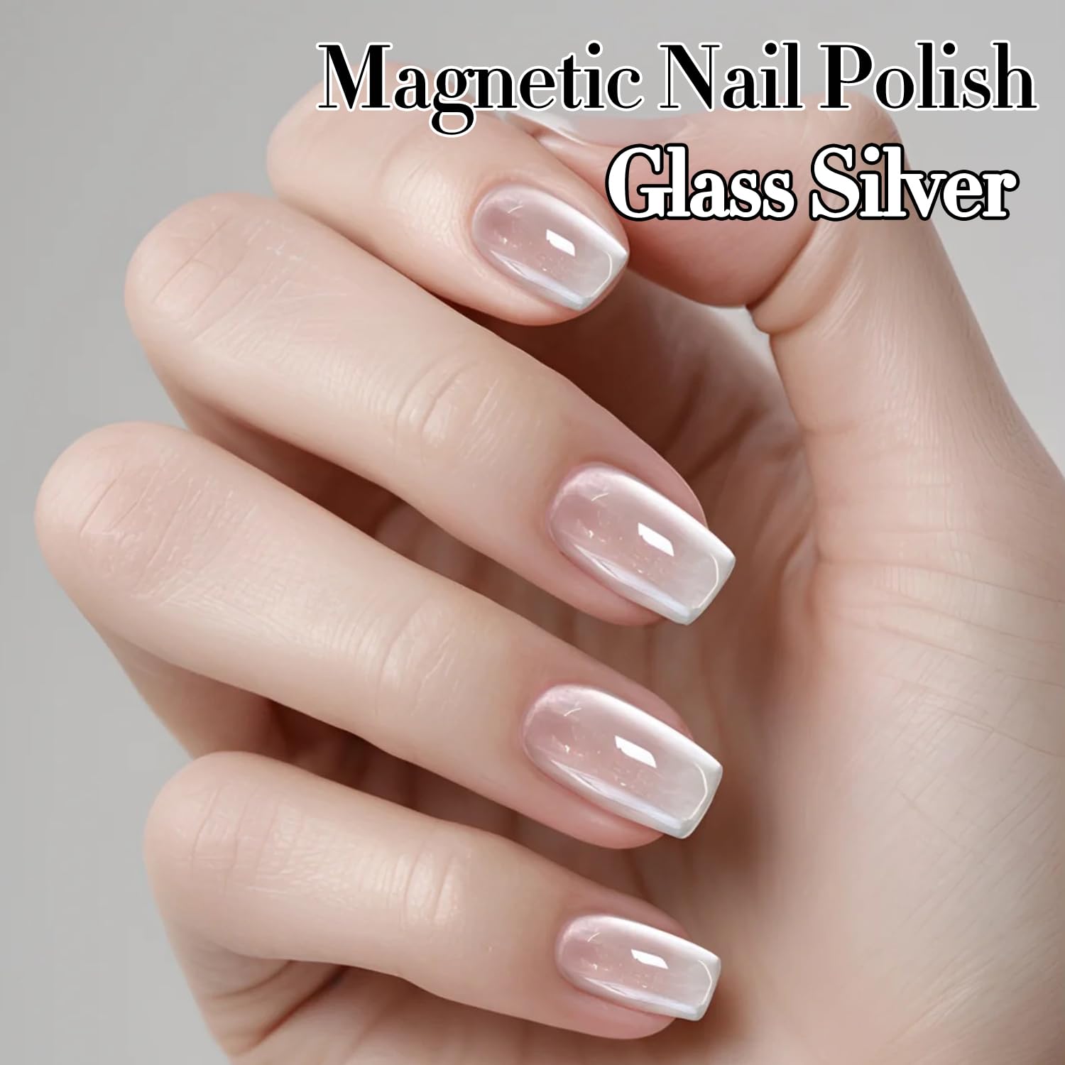 Double Rhythm 0.5 Oz Cat Eye Gel Polish with Magnet Same Color Same Bottle Holographic Glitter Shimmer Translucent Color Salon 15 ML Magnetic Nail Art (Clear Silver-MC1147)