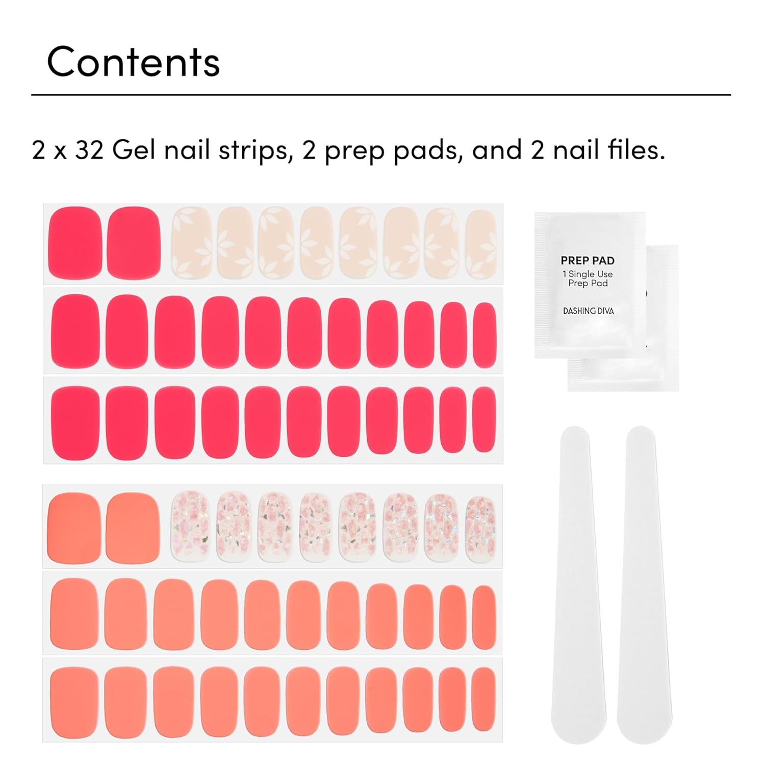 Dashing Diva Gloss Nail Strips Bundle - The Vivids Collection - Fruit Punch Petals & Papaya Breeze - UV Free, Chip Resistant, Long Lasting Gel Stickers - Contains 2 Sets