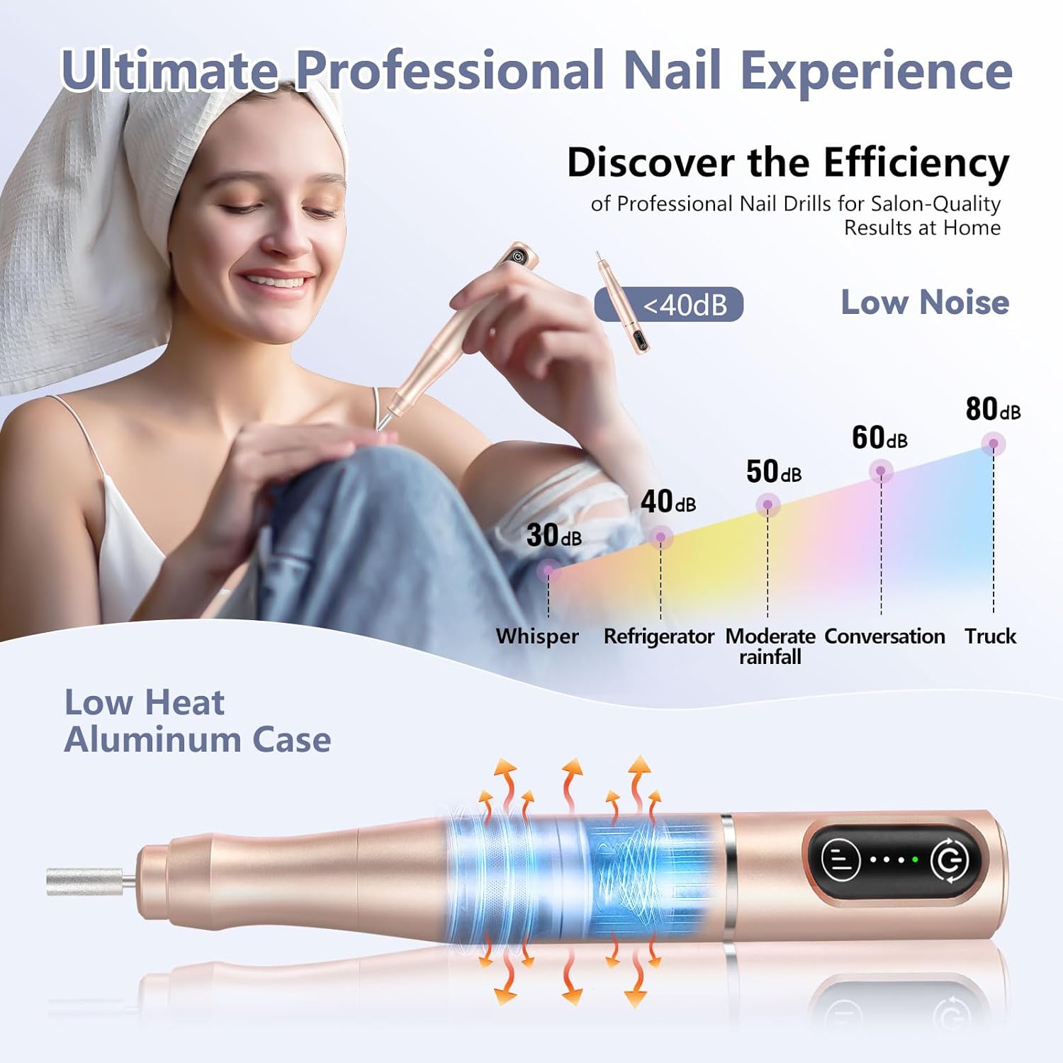 - 1.5h Charge, 7h Use: TUOBEO rechargeable cordless nail drill is designed for ultimate convenience, allowing you to enjoy salon-quality manicures and pedicures anytime, anywhere. With its long-lasting 650 mAh battery life offers an impressive 7 hours of continuous use after a 1.5-hour charge, ensuring you have ample time for your nail care routine. Its lightweight and compact design ensures it fits easily into your purse or carry-on bag, so you never have to compromise on nail care