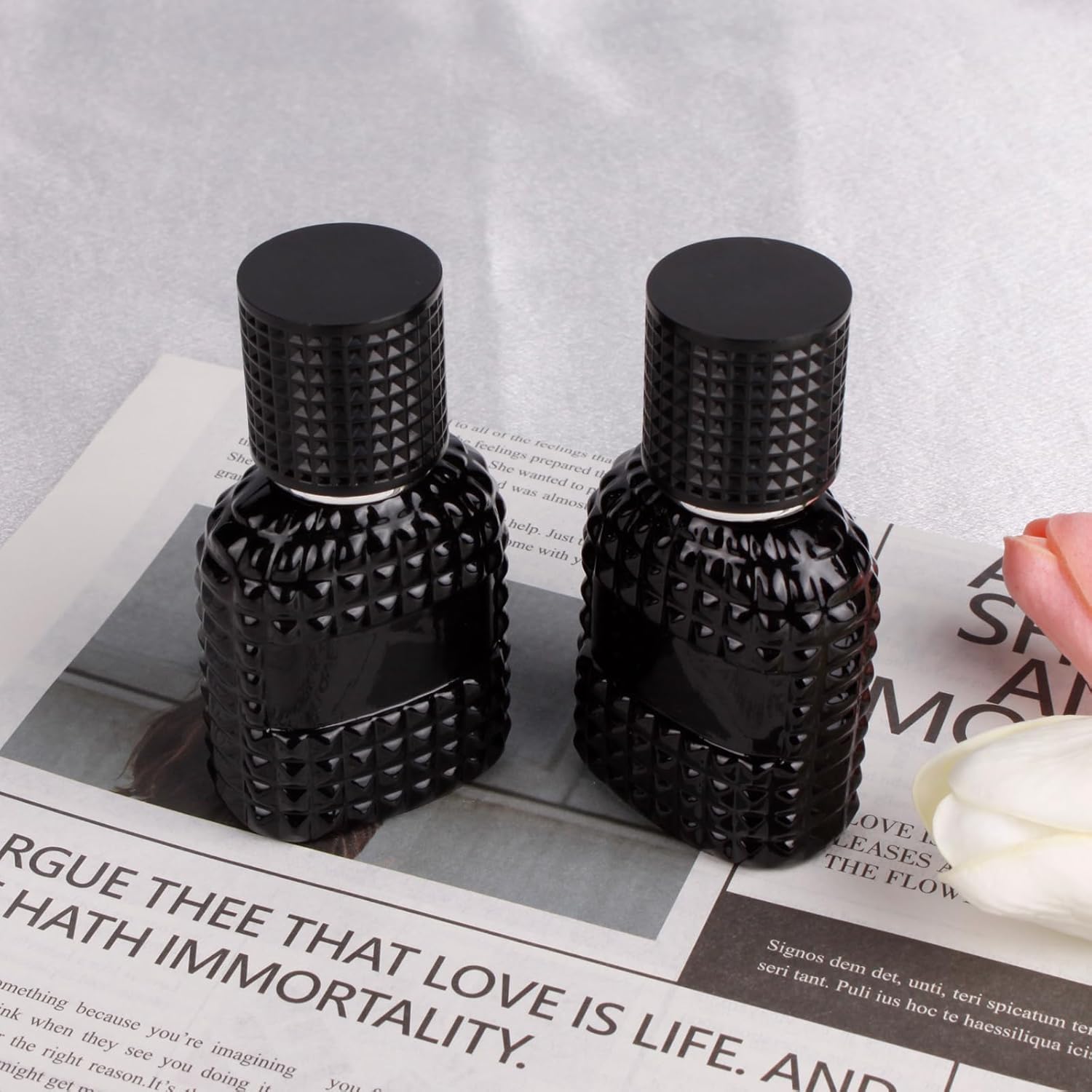 2 Pack 30ml Perfume Spray Bottles Empty, Refillable Glass Fine Mist Atomizer, Portable Travel Perfume Atomizers Fragrance Containers Sprayer for Cleaning, Essential Oils, Liquids (Black)