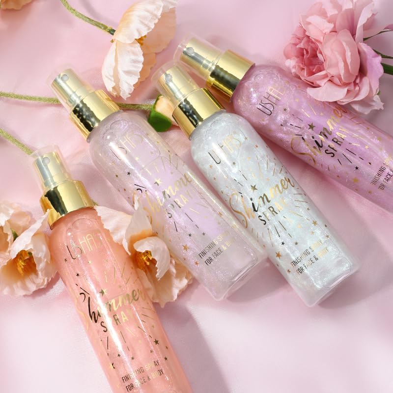 USHAS Body Glitter Spray 3.72 fl.oz - Temporary Body Shimmer Spray for Face, Hair, Clothing, Long Lasting Quick-Drying Shiny for Music Festival Rave (04)