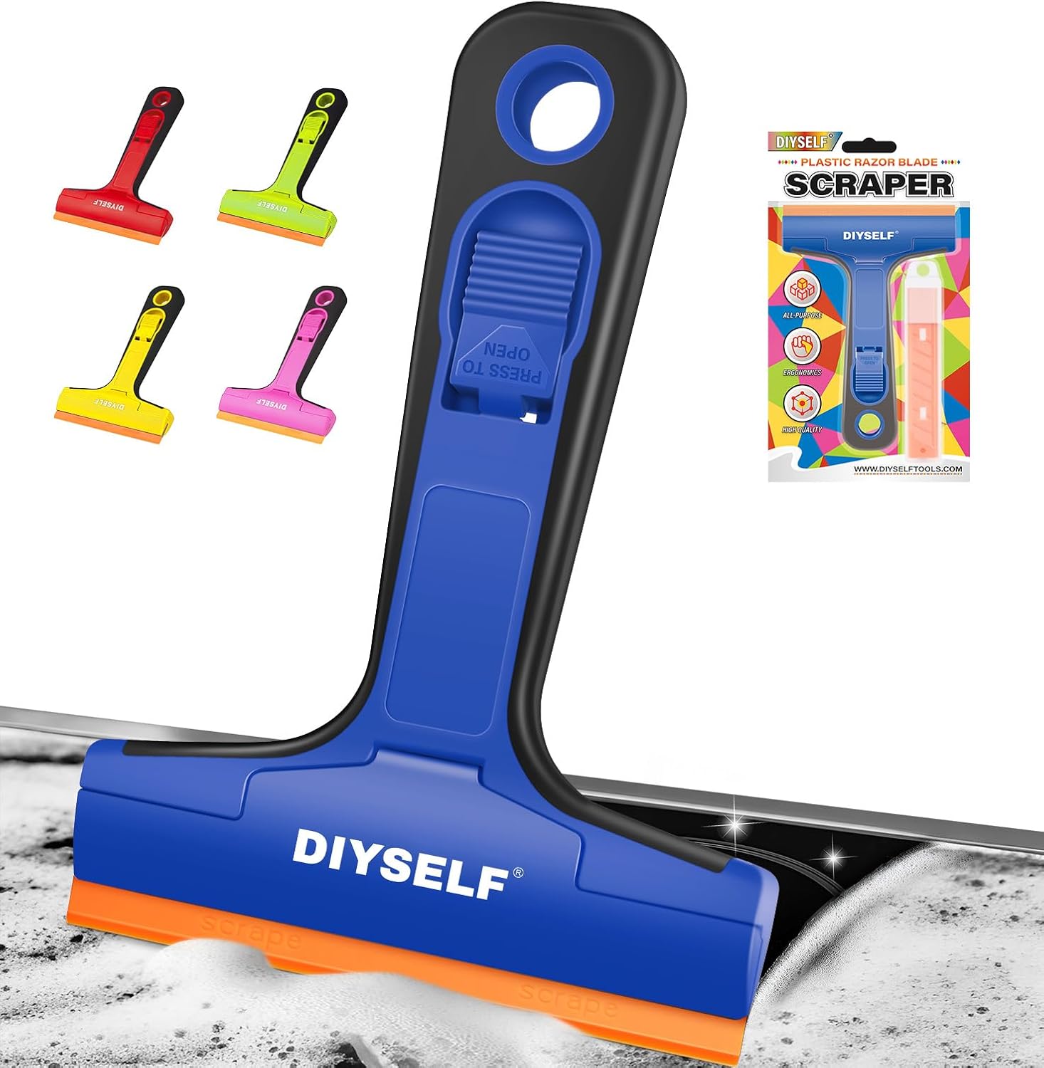 - Durable Value That Feels Smart: Feel confident and prepared with 5 ultra-durable, scratch-safe orange plastic blades included. Their long-lasting sharpness means fewer replacements and more savings. Get this reliable, cost-effective Razor Scraper Tool and know you've chosen wisely for all your scraping needs