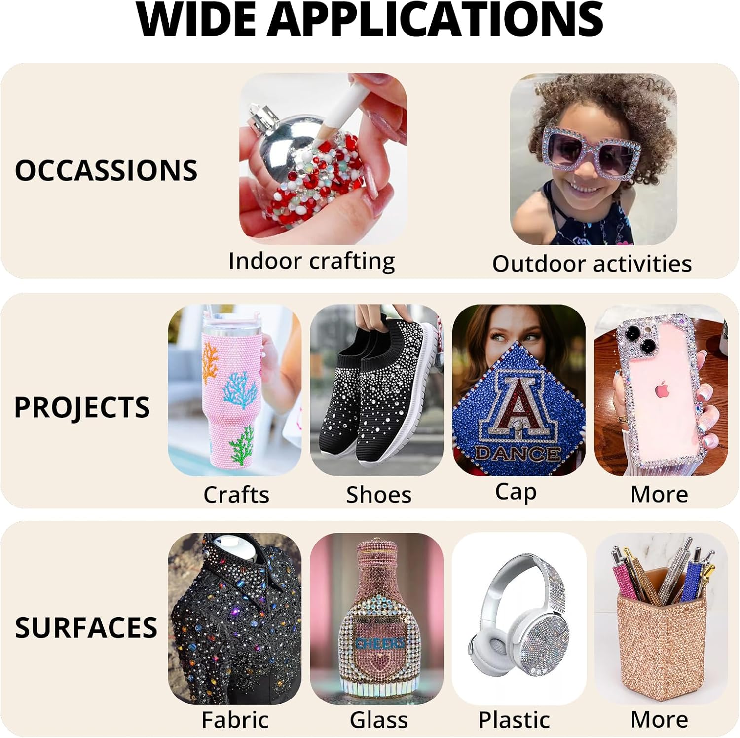 - Easy to Use -- This kit is designed to be straightforward, and versatile for various crafting projects. The manual is user-friendly and beneficial for both novice and experienced crafters. The complete and durable tools are suitable for precisely applying rhinestones to create intricate designs, with no additional tools required. Rhinestones are easy to apply and remove. The sturdy container with 33 grids keeps all rhinestones organized by size and color, making them easy to store and access