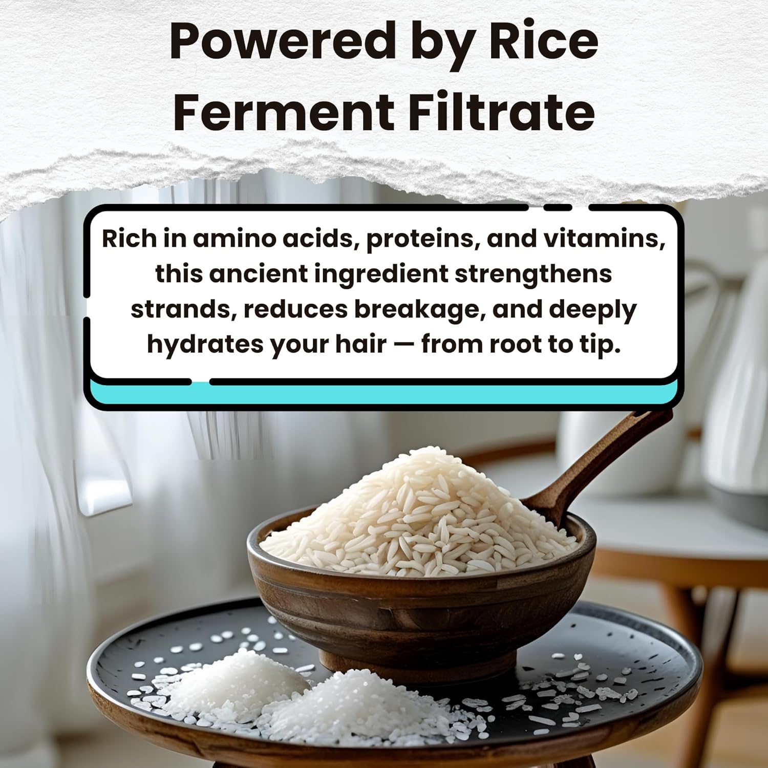 - Powered by Rice Protein and Rice Ferment Filtrate: A hero ingredient in Korean haircare that helps strengthen strands, improve elasticity, and enhance shine for healthier-looking hair.
