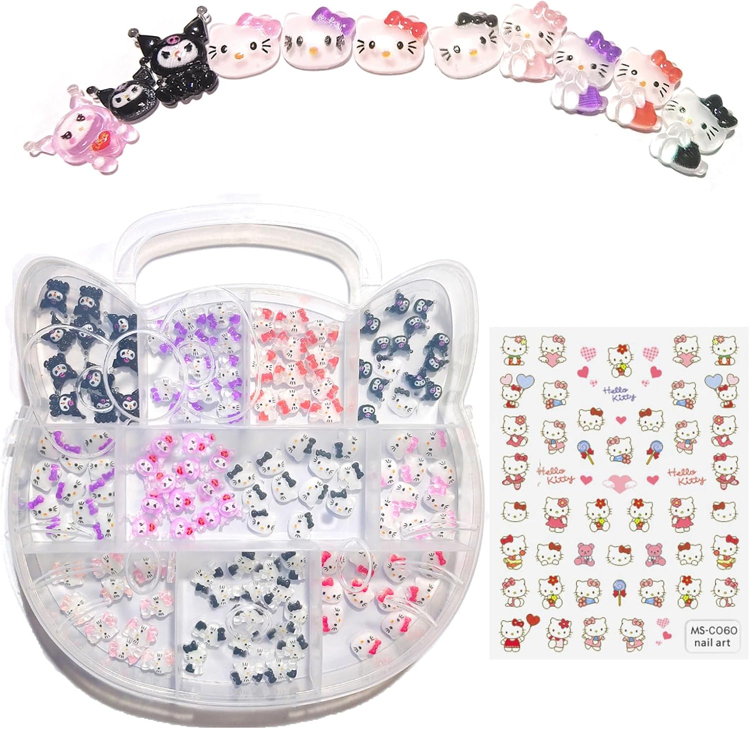 - 【Package Content】122PCS Kawaii Nail Charms, 11 pack 11 different cartoon kitty nail charms.And there's also a beautiful kitty cat sticker. Help you DIY vivid and charming nails