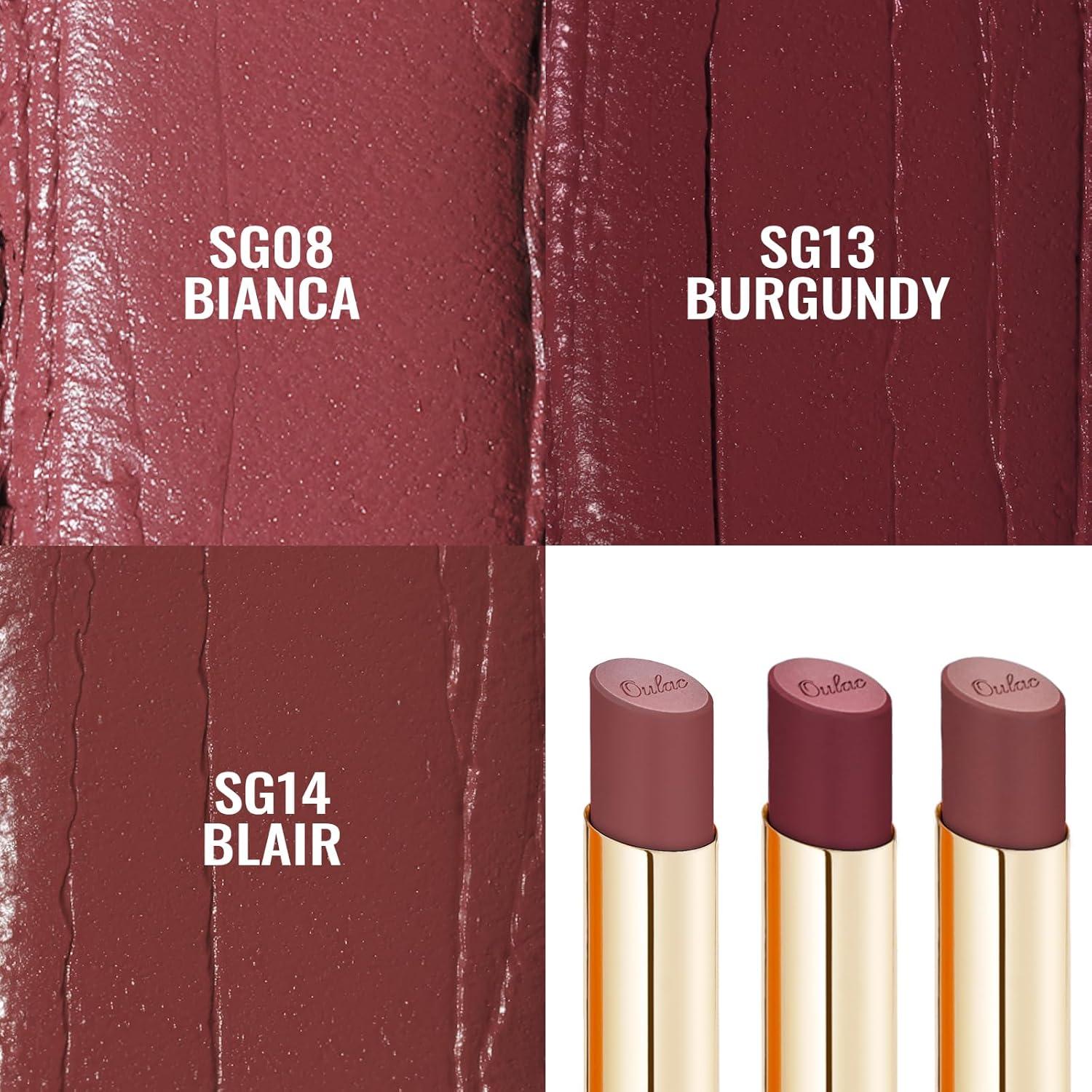 - Nourishing & Moisturizing: Oulac Satin Lipstick is enriched with Shea Butter, Hyaluronic Acid, and Damascus Rose Oil to deeply hydrate your lips. Enjoy lasting comfort while preserving natural softness and combating dryness