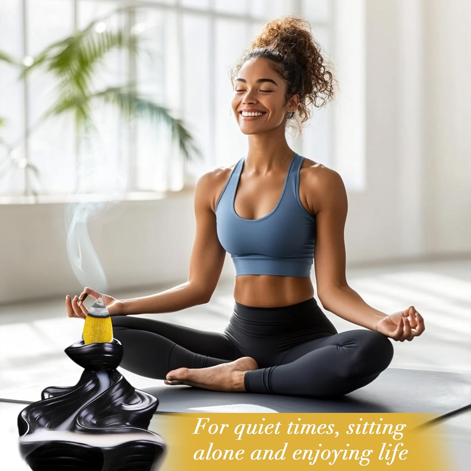 - Exclusive Appearance: The backflow incense cones burn to form a graceful column of smoke that flows slowly down from the top of the waterfall incense burner, as if a waterfall were dropping from the sky. The column of smoke gradually disperses downward, forming a light layer of smokeThe smoke wafts through the air, creating a mysterious and romantic atmosphere. It is best to equip a special backflow incense holder when using in order to achieve the beautiful effect of a waterfall flowing down
