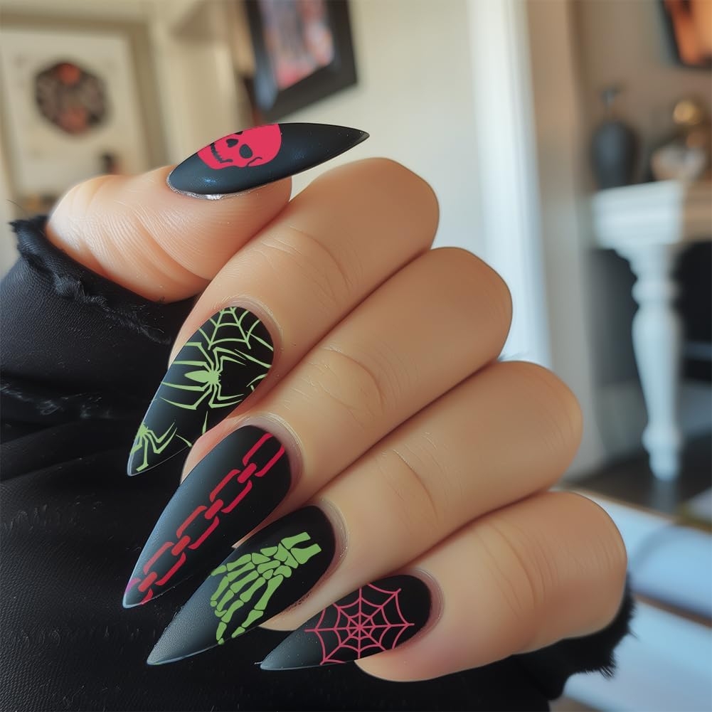 - Package Information: A total of 3 templates, 1 nail stamp and scraper, cobwebs, bones, skulls, bats, thorns and other gothic elements patterns, randomly collocation, leading the nail fashion, the world at your fingertips jump