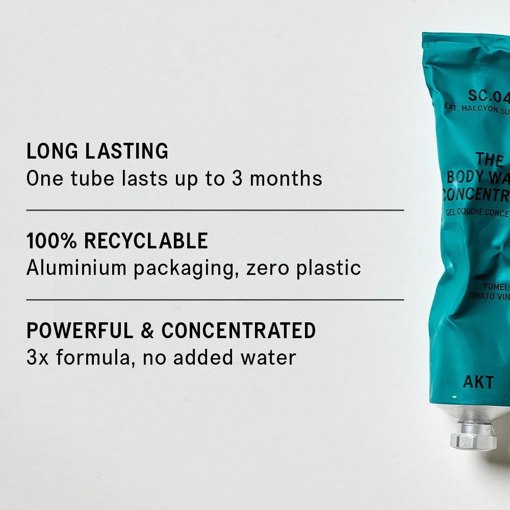 - Waterless, Travel Size Body Wash That Lasts: This sustainable body wash skips the water — so you get 3 months of use from just one TSA-friendly tube. Activate a small amount with water in your shower for rich, creamy foam. Ideal for on-the-go use or minimal-space routines.
