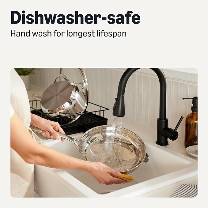 - COMFORTABLE DESIGN: Ergonomic riveted stainless steel handles stay cool to the touch for safe, comfortable cooking