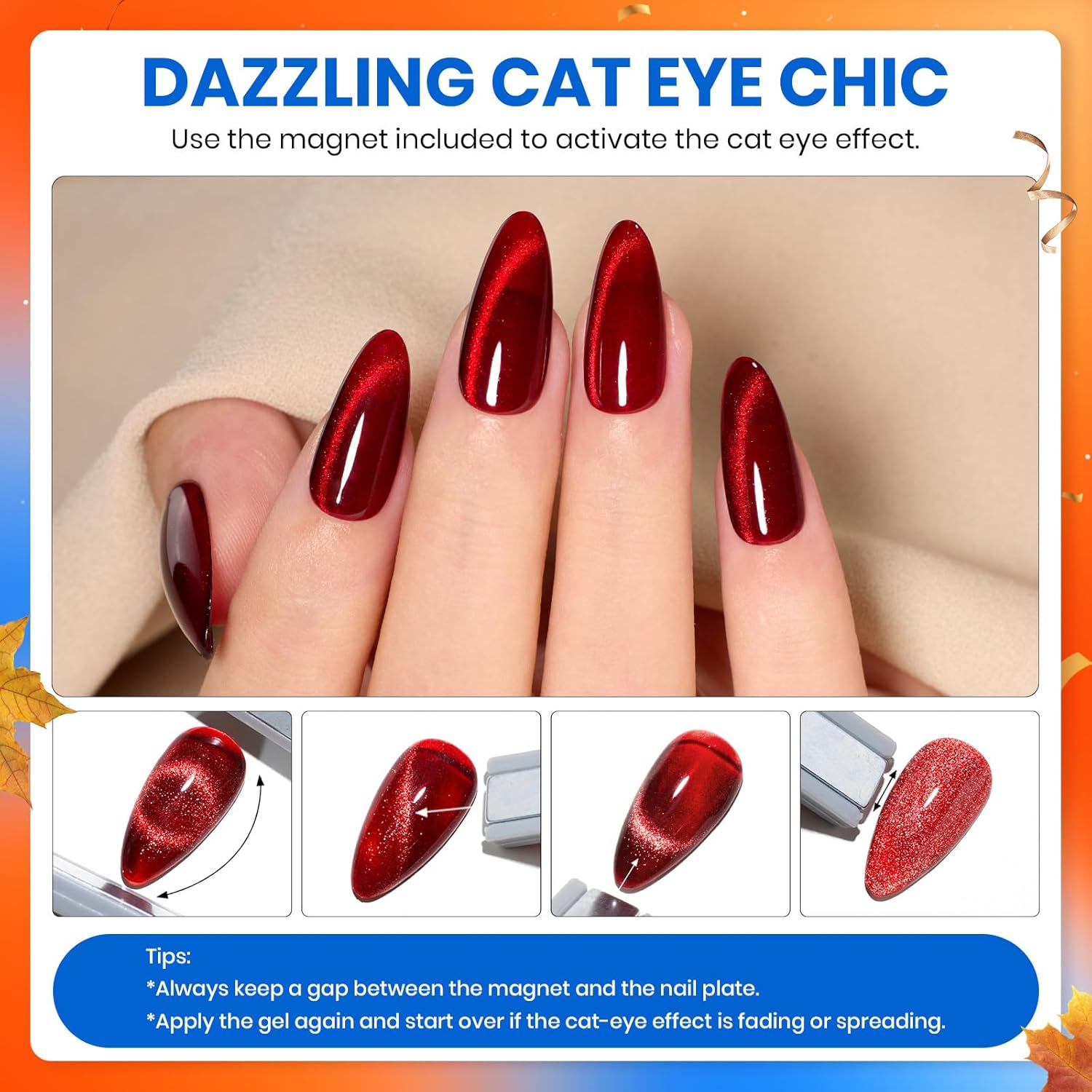 - Featuring a versatile range of colors : from warm yellows and vibrant oranges to bold reds, cat eye gel, and eye-catching glitters – this kit has the perfect shade to match any outfit or mood. Whether you're creating a cozy look for everyday wear or something bold for a summer event, you'll find the ideal color right here.