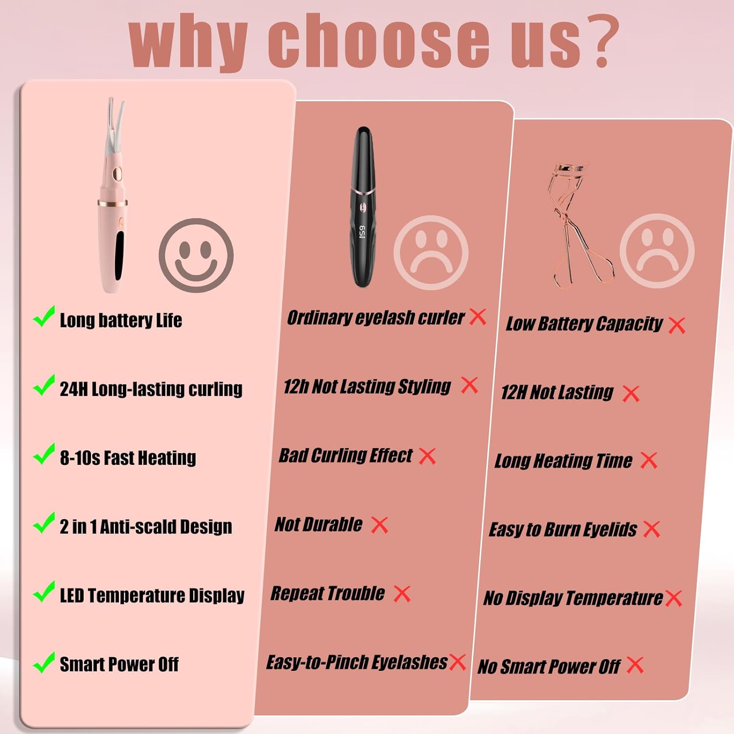 - Quick Natural Curling - The heated eyelash curler can fast heat up within 10s, creating a perfect natural curling eye makeup quickly without crimping or pinching. Lasting for 24 hours