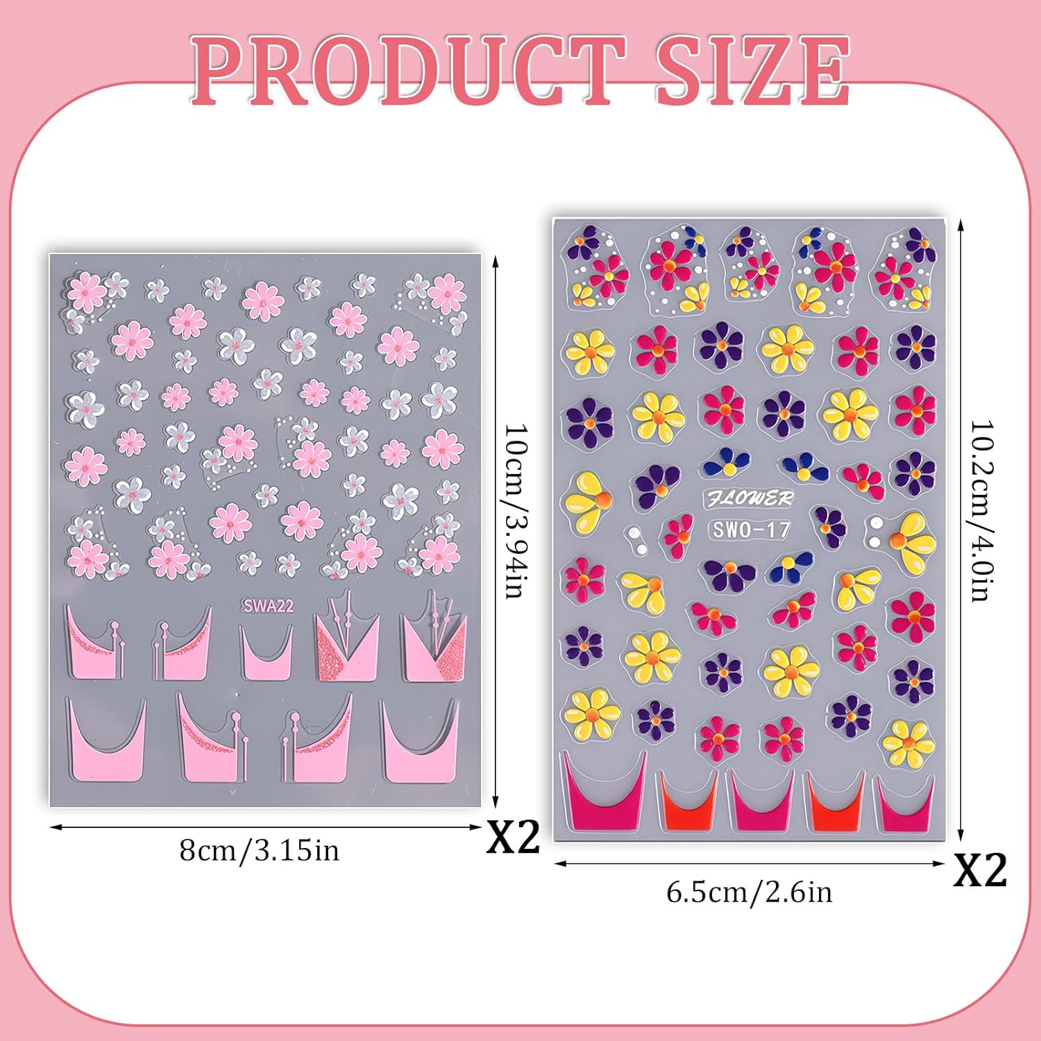 - 【Flower Nail Art Stickers】You will get 4 sheets 3d flower nail stickers for nails salon, many cute flower pattern for you to choose, colorful floral nail designs, and satisfy your rich imagination of nail DIY.