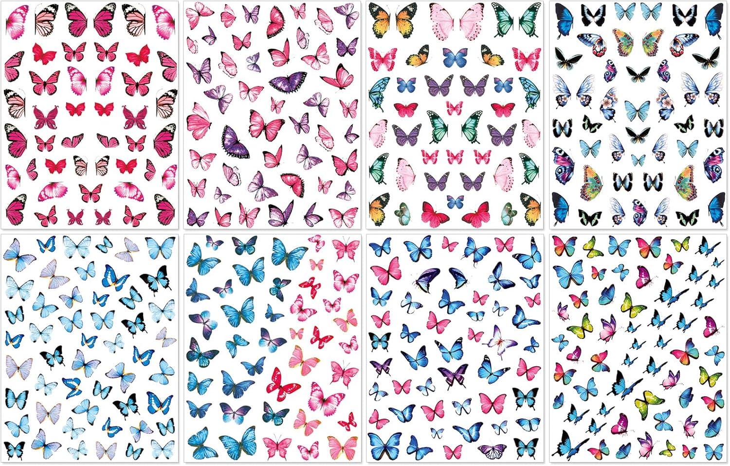 8 Sheets Butterflies Nail Art Stickers - Colorful Butterflies Wing Self-Adhesive Nail Decals for DIY Spring Summer Manicure